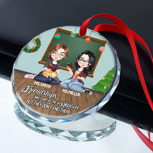Friendships May Start At The Workplace - Personalized Custom Glass Ornament DSURGOPLPA1749D