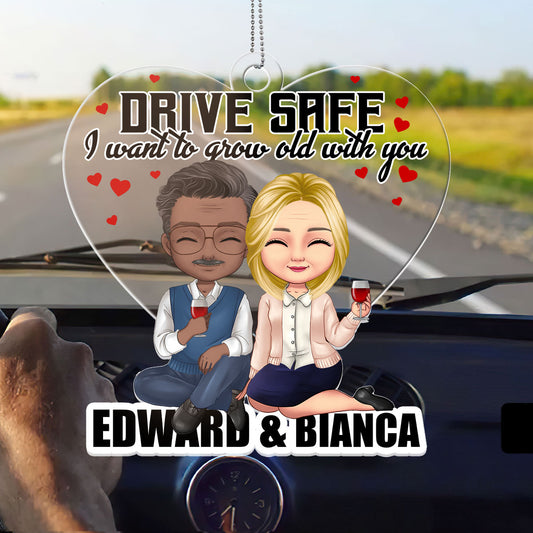 Drive Safe, I Want To Grow Old With You - Personalized Custom Car Ornament DSUPCHODH1545M