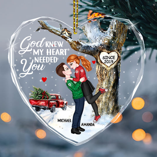God Knew My Heart Needed You - Personalized Heart Shaped Glass Ornament DSHGOHLN2606M