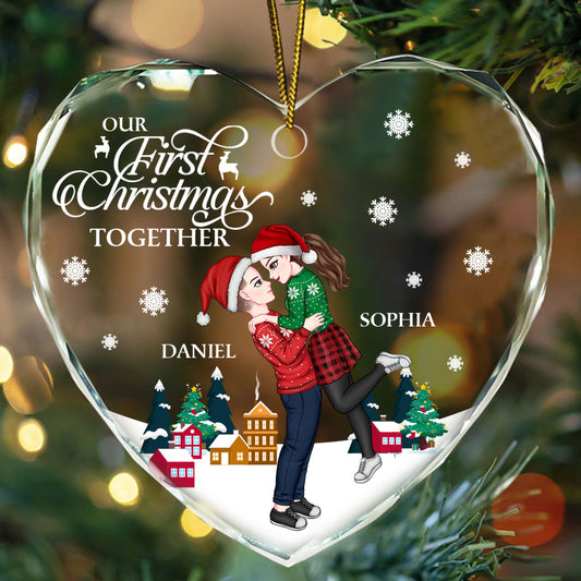 Our First Christmas Together - Personalized Heart Shaped Glass Ornament DSHGODN2187L