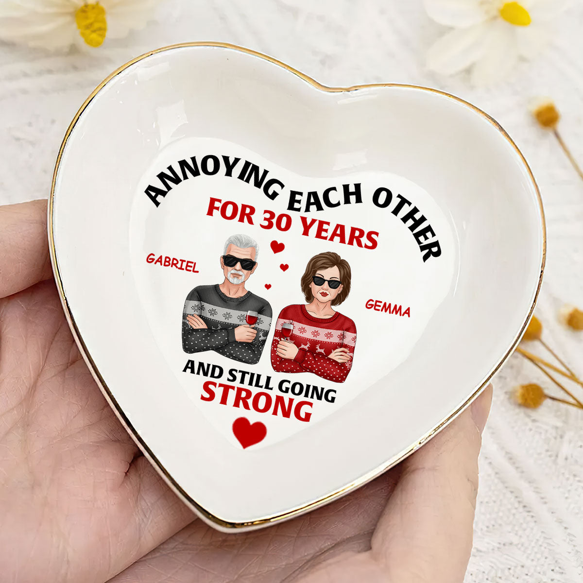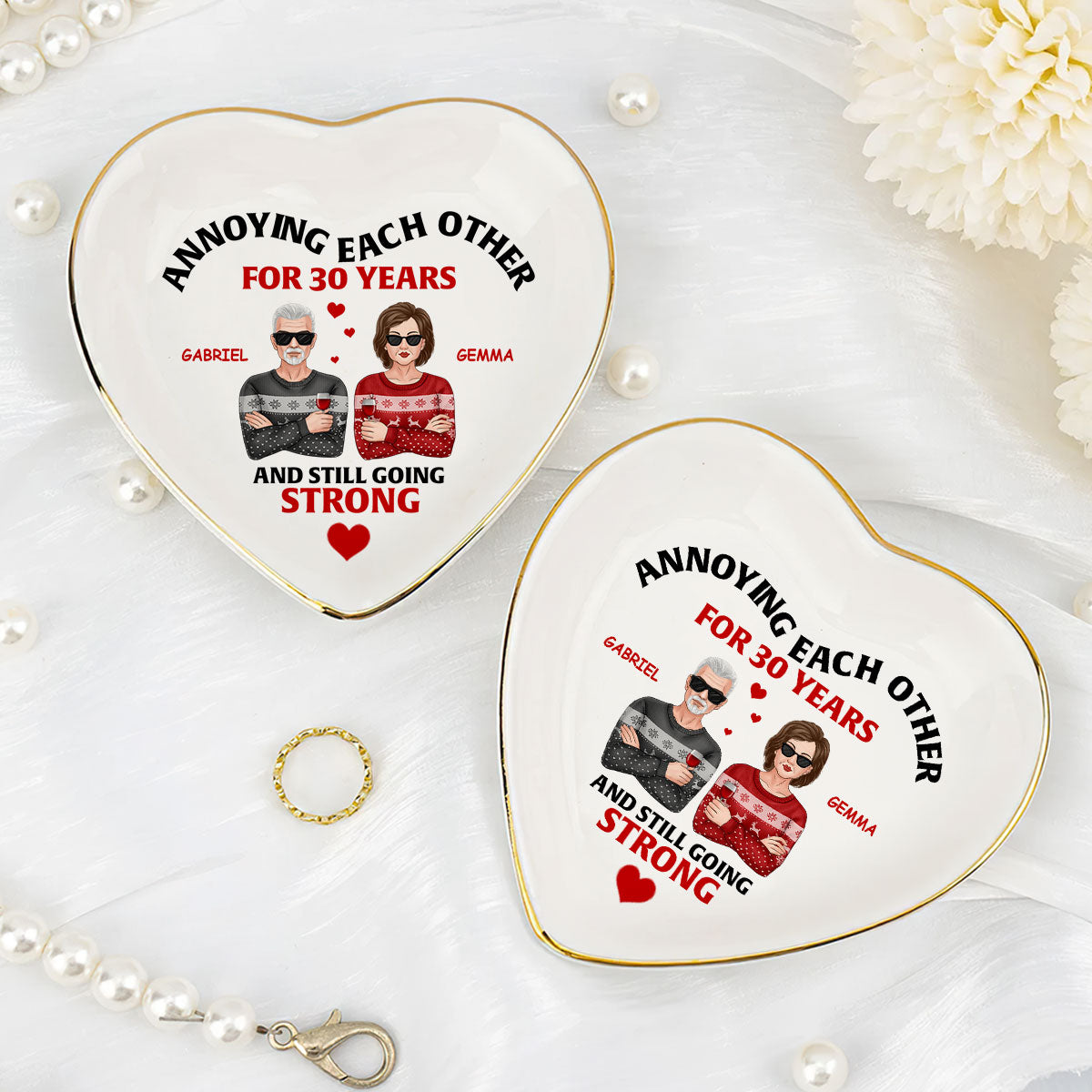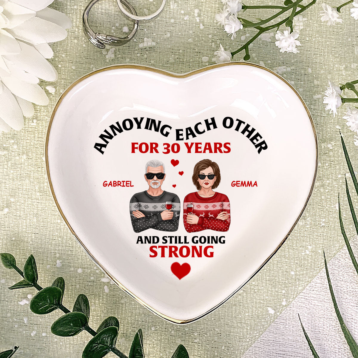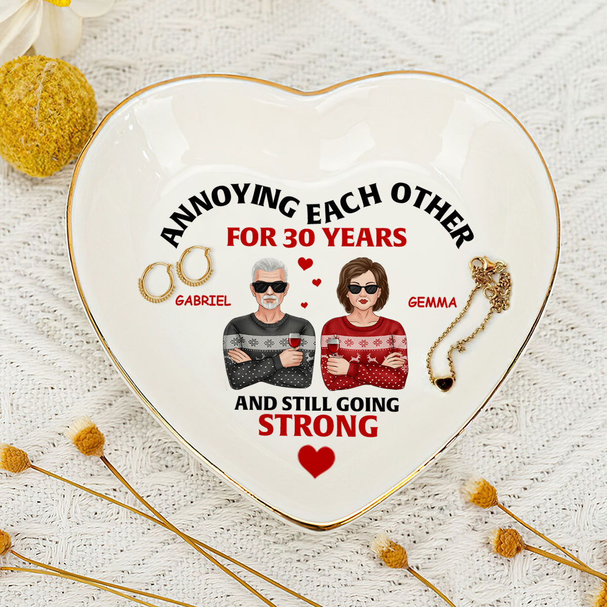 Annoying Each Other And Still Going Strong - Personalized Heart Shaped Jewelry Dish DSSHSCRDHLN2441L