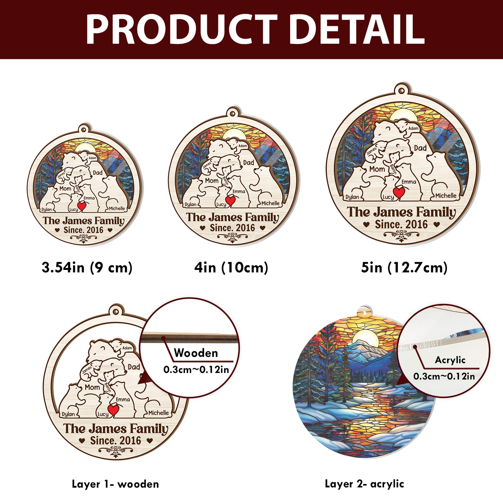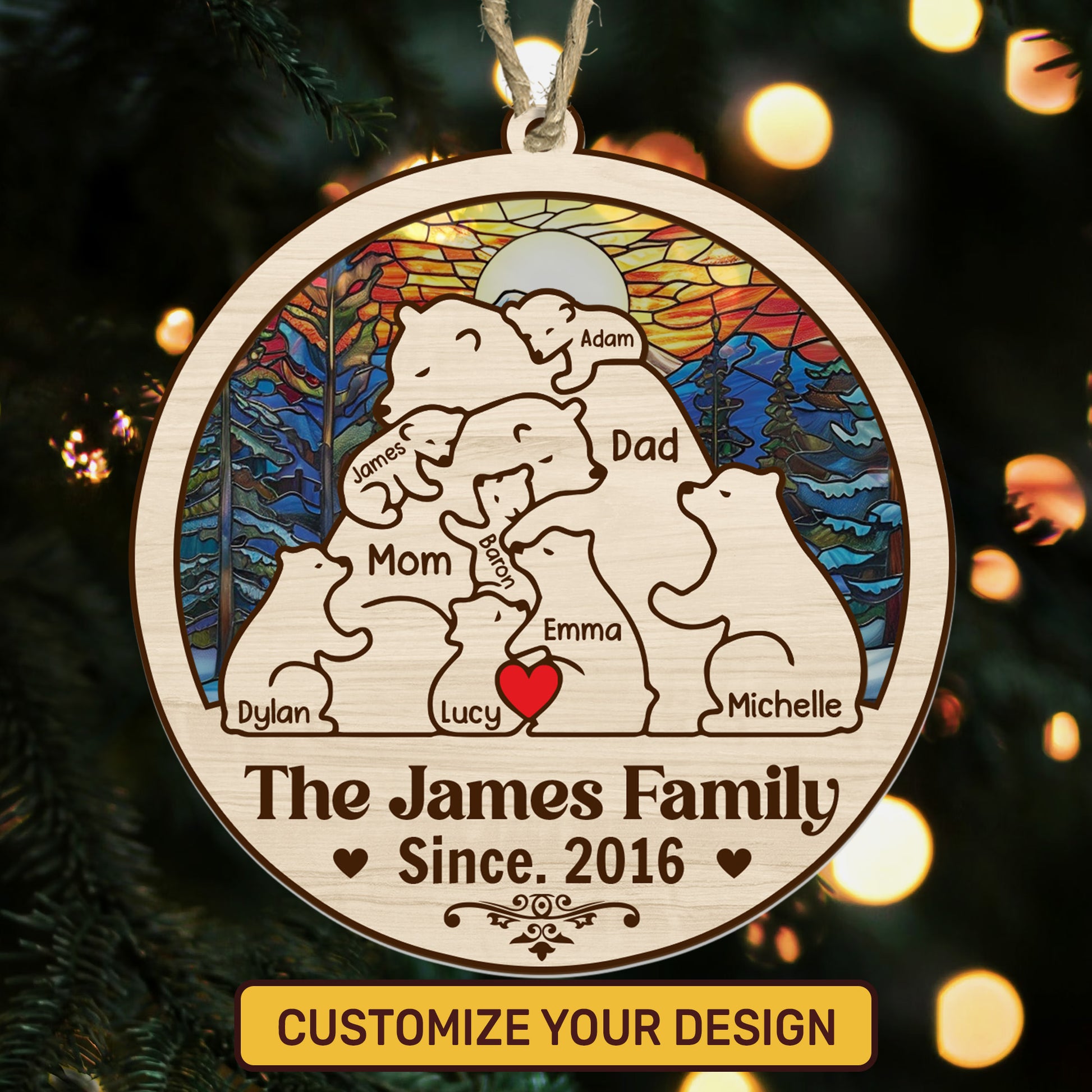 Bear Family - Personalized Suncatcher Ornament DSSUNOPTN1063L