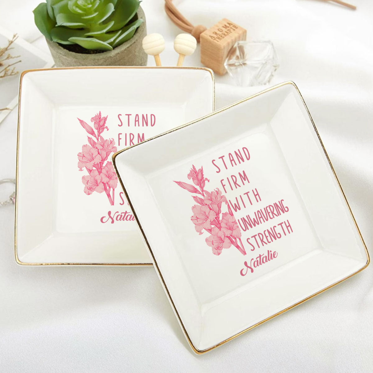 Birth Month Flower And Positive Quote - Personalized Jewelry Dish DSJDHLN1934L