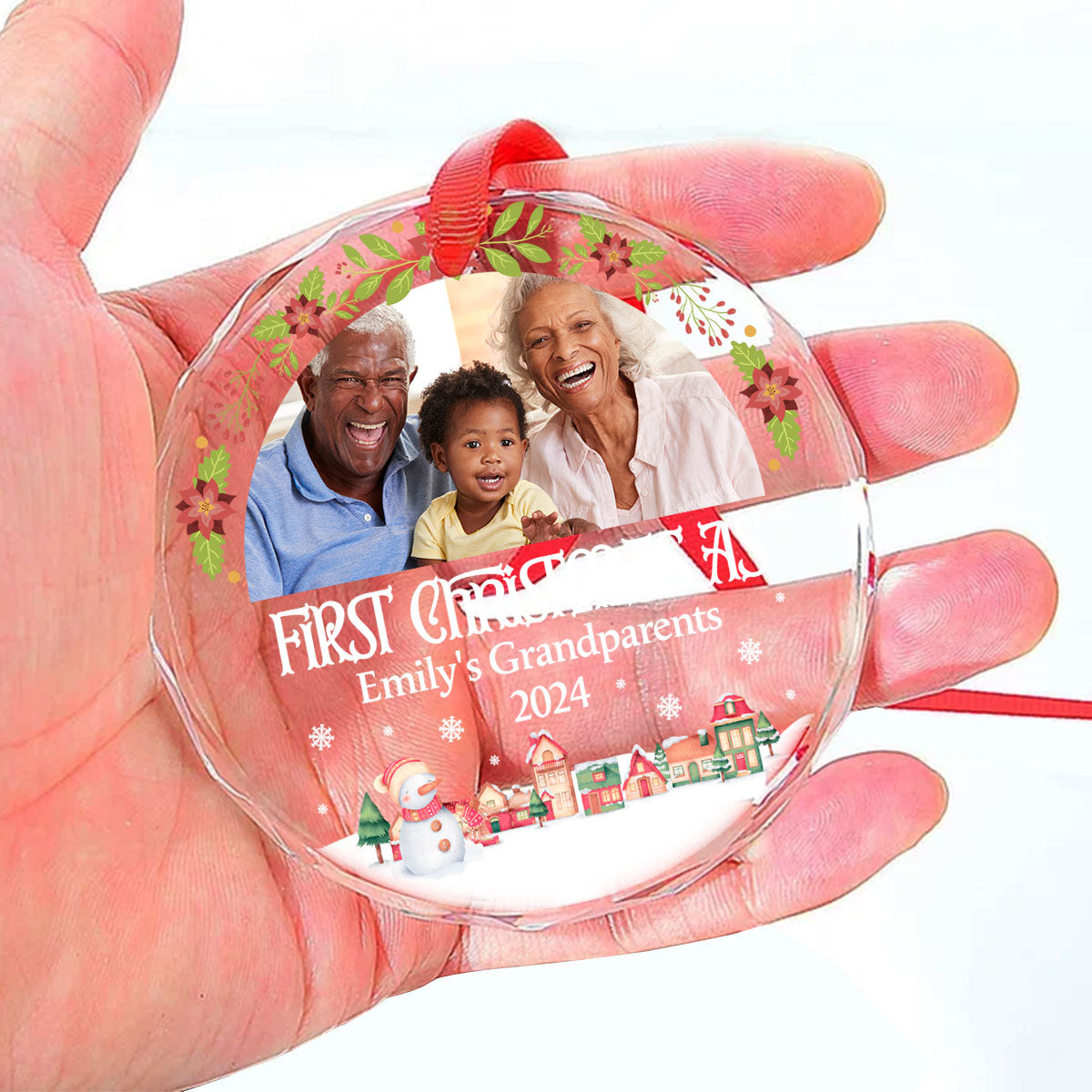 Custom Photo First Christmas As Grandma Grandpa - Personalized Custom Glass Ornament DSURGOPHLPA2037M