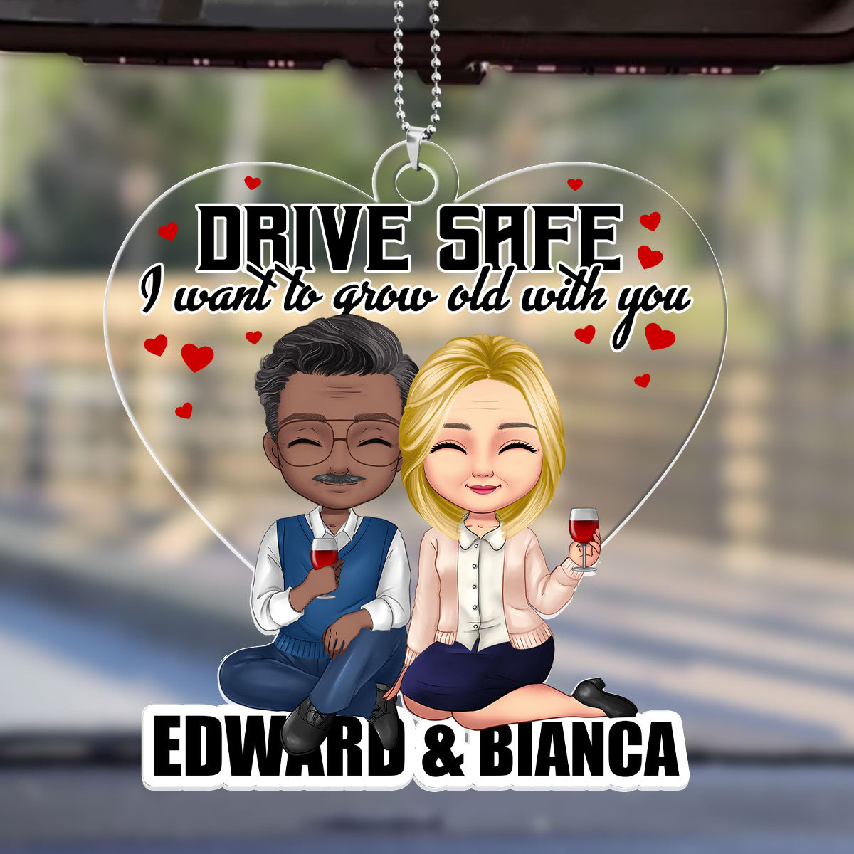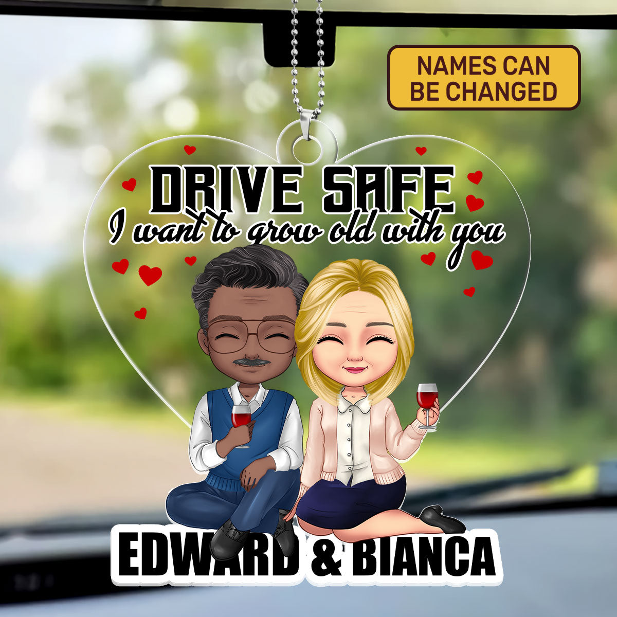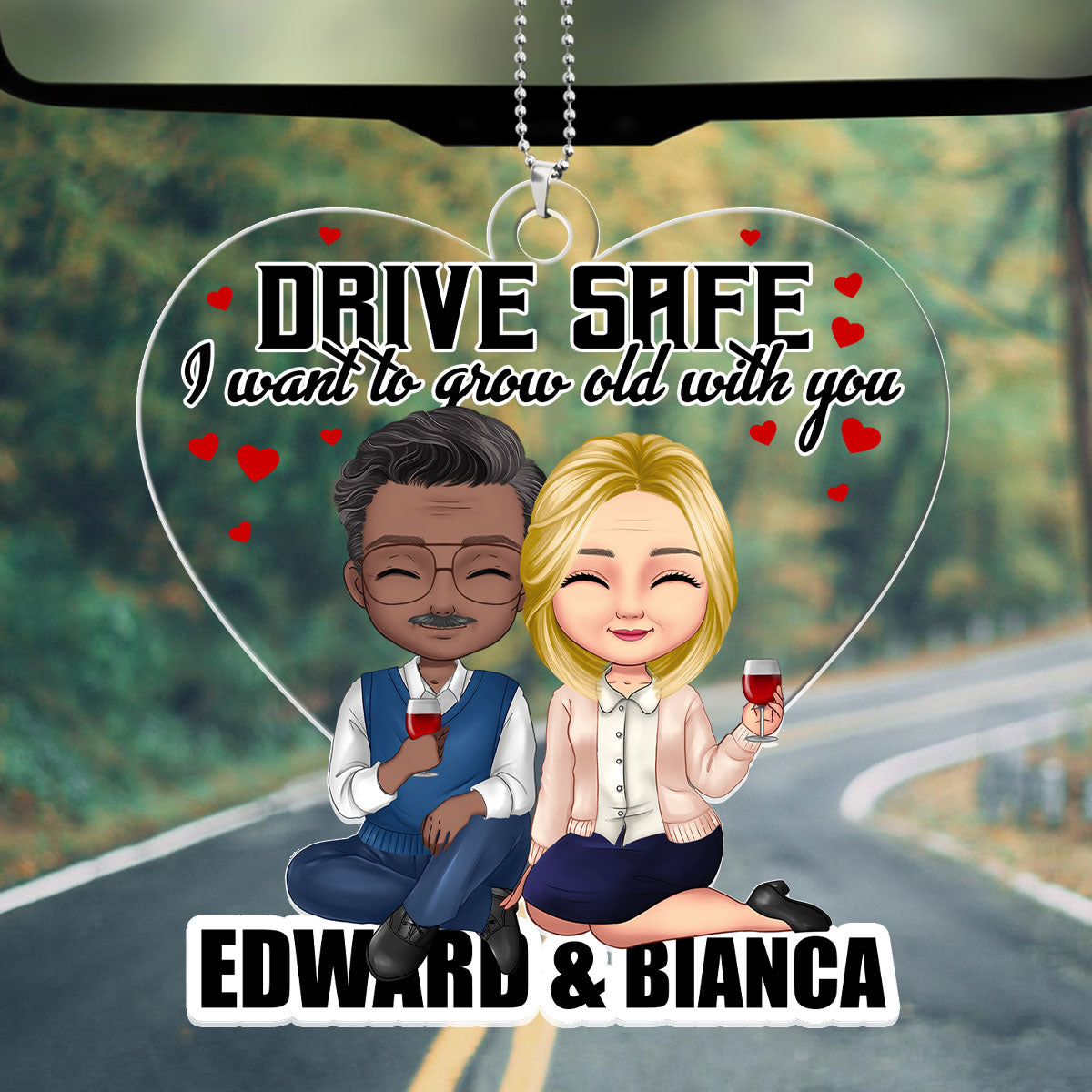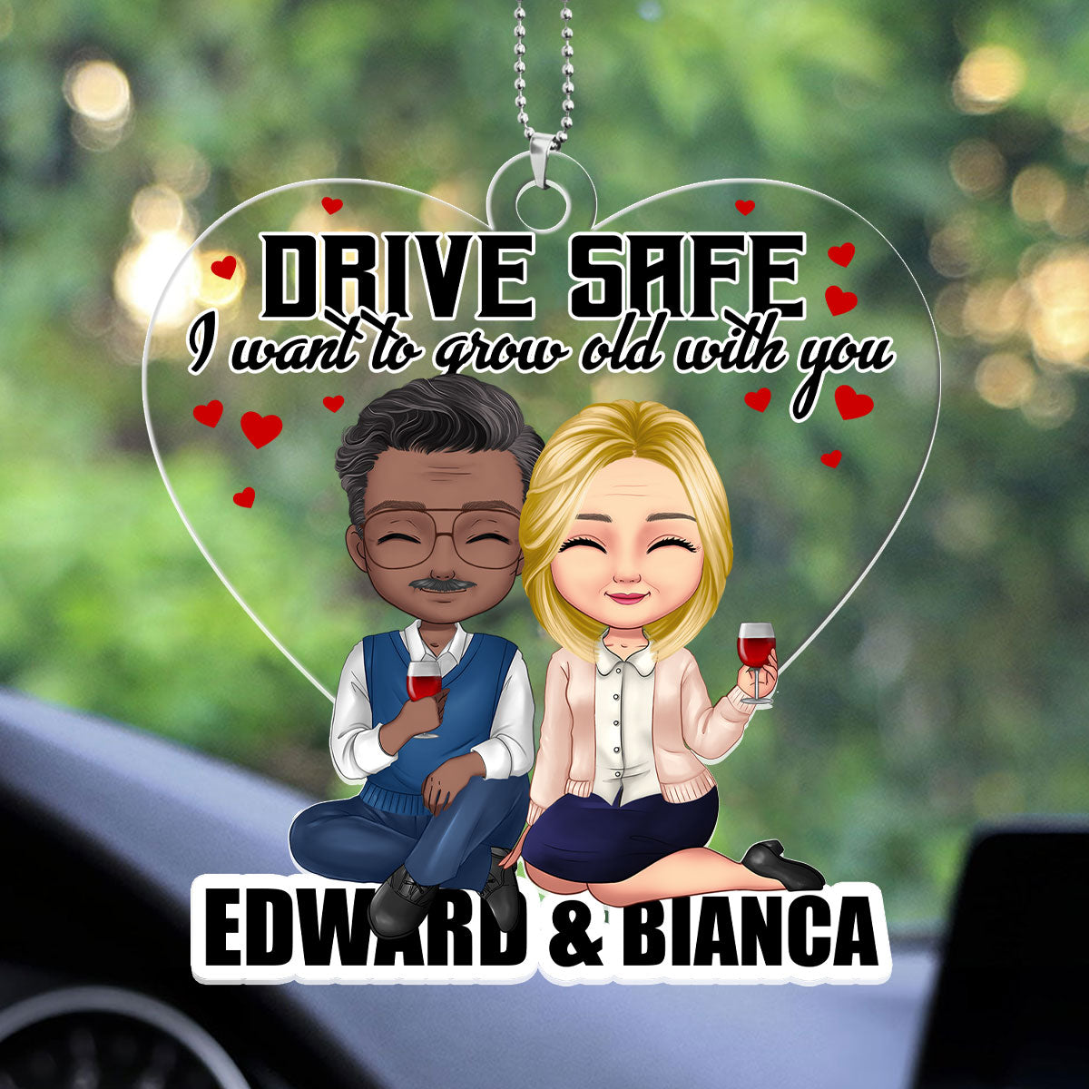 Drive Safe, I Want To Grow Old With You - Personalized Custom Car Ornament DSUPCHODH1545M