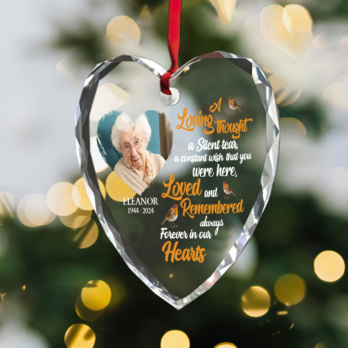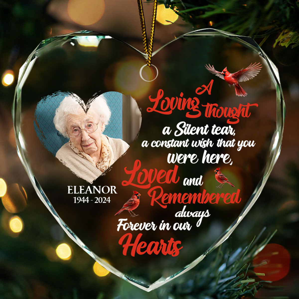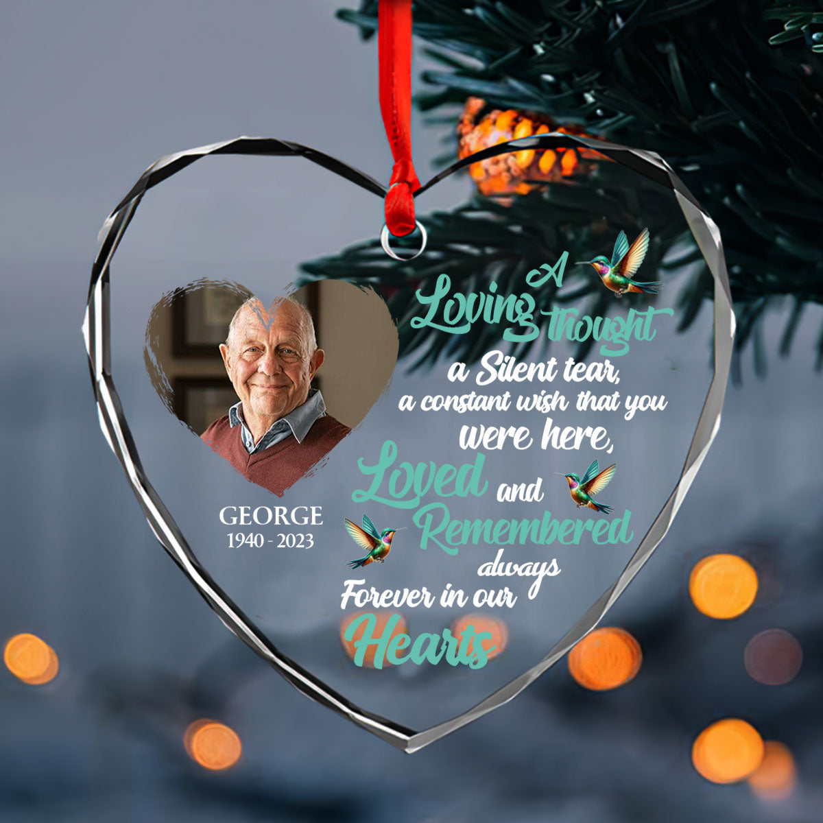 Forever In Our Hearts - Personalized Heart Shaped Glass Ornament DSHGOHLPA2120L