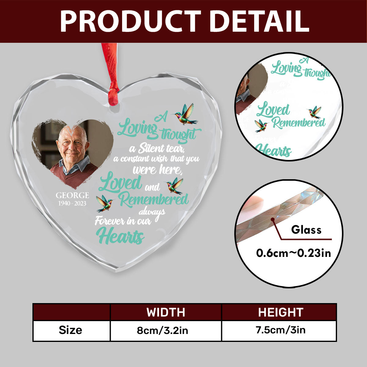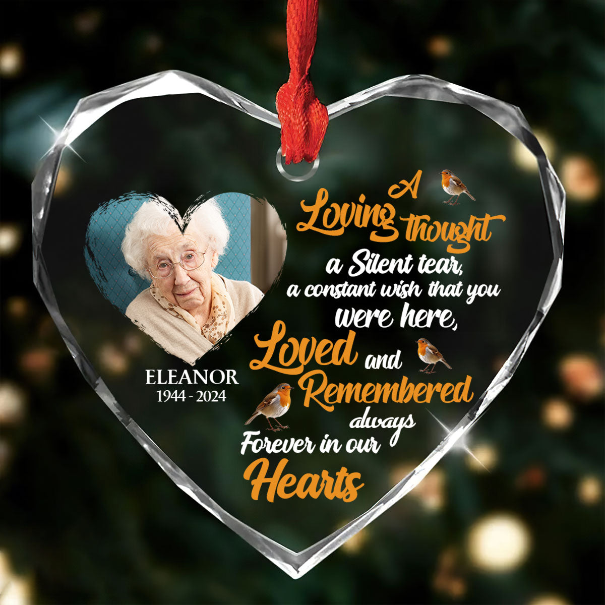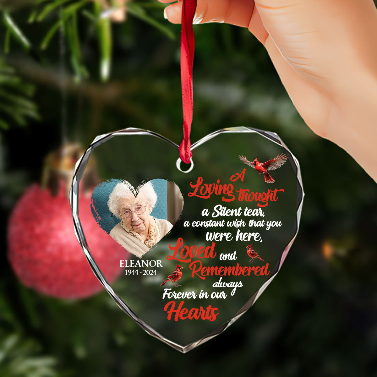 Forever In Our Hearts - Personalized Heart Shaped Glass Ornament DSHGOHLPA2120L
