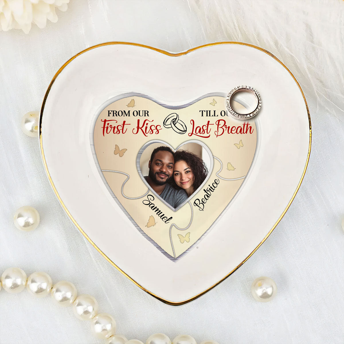 From Our First Kiss Till Our Last Breath Couple Photo - Personalized Heart Shaped Jewelry Dish DSSHSCRDHLN2490T