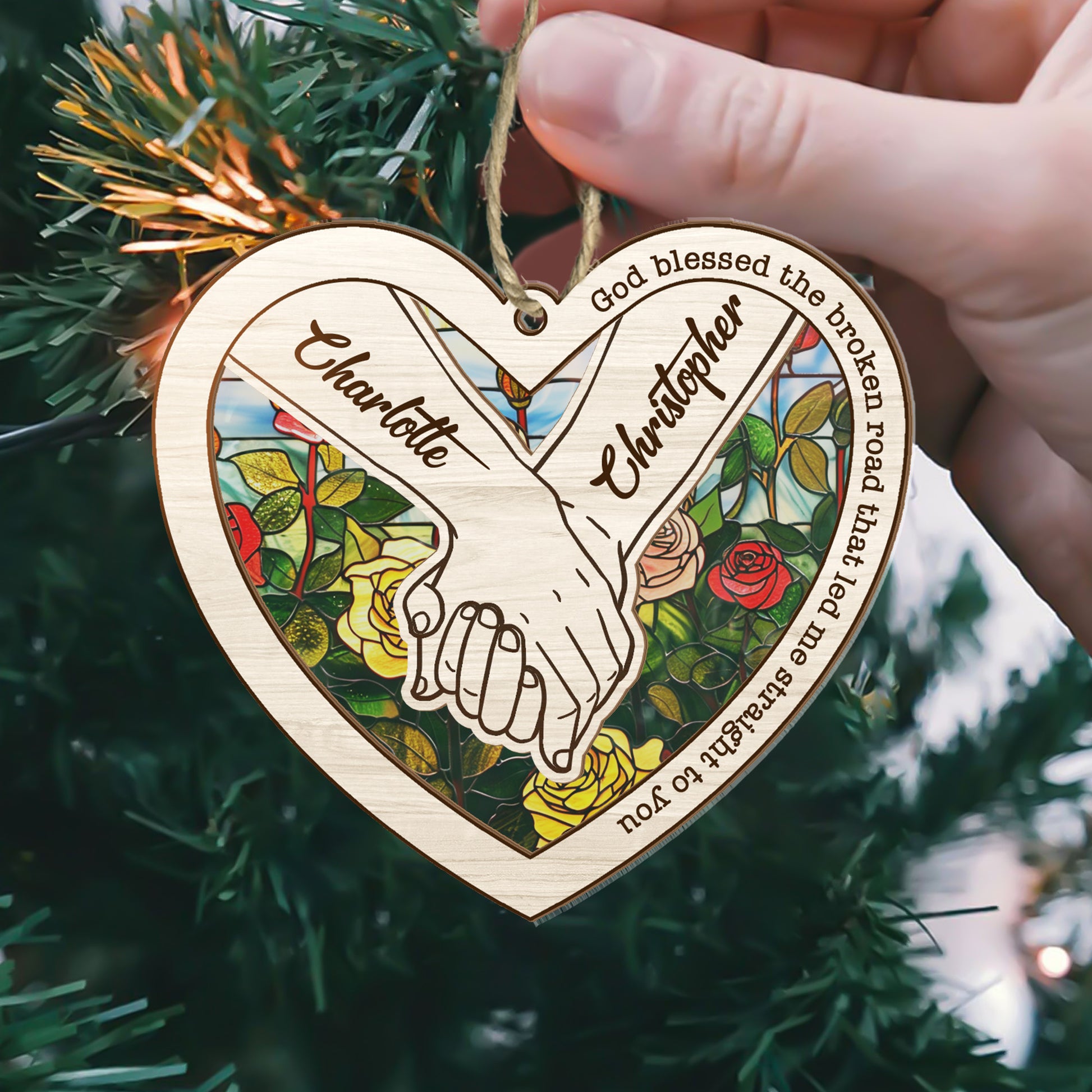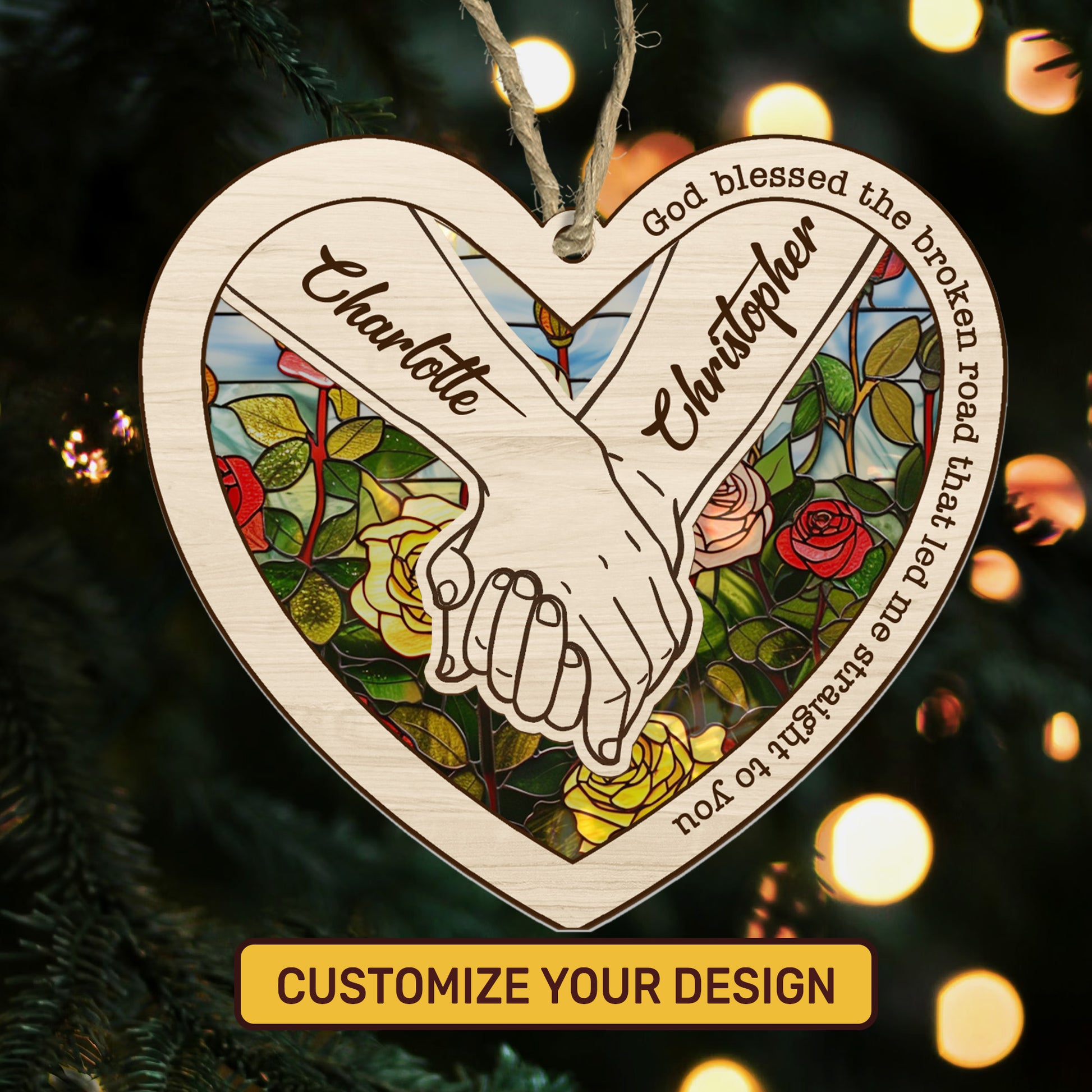 God Blessed The Broken Road That Led Me Straight To You - Personalized Suncatcher Ornament DSSUNOPTN1060M