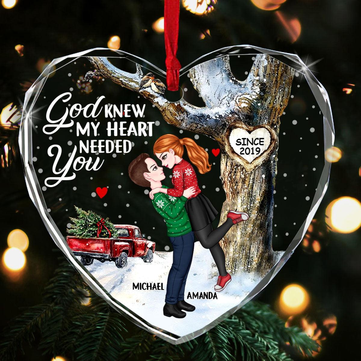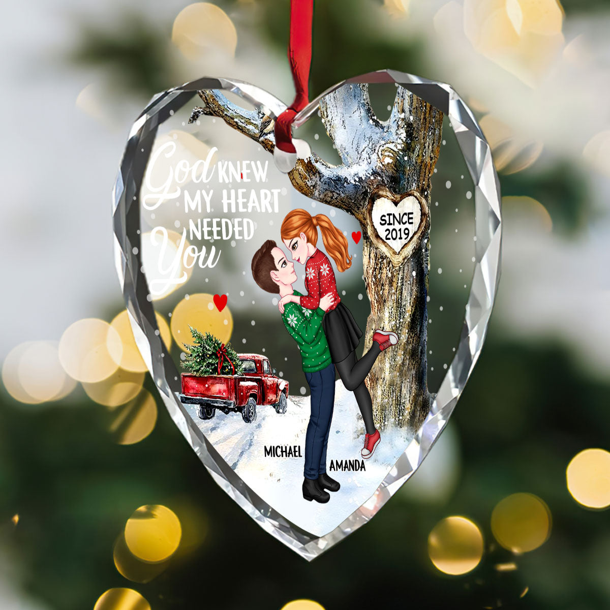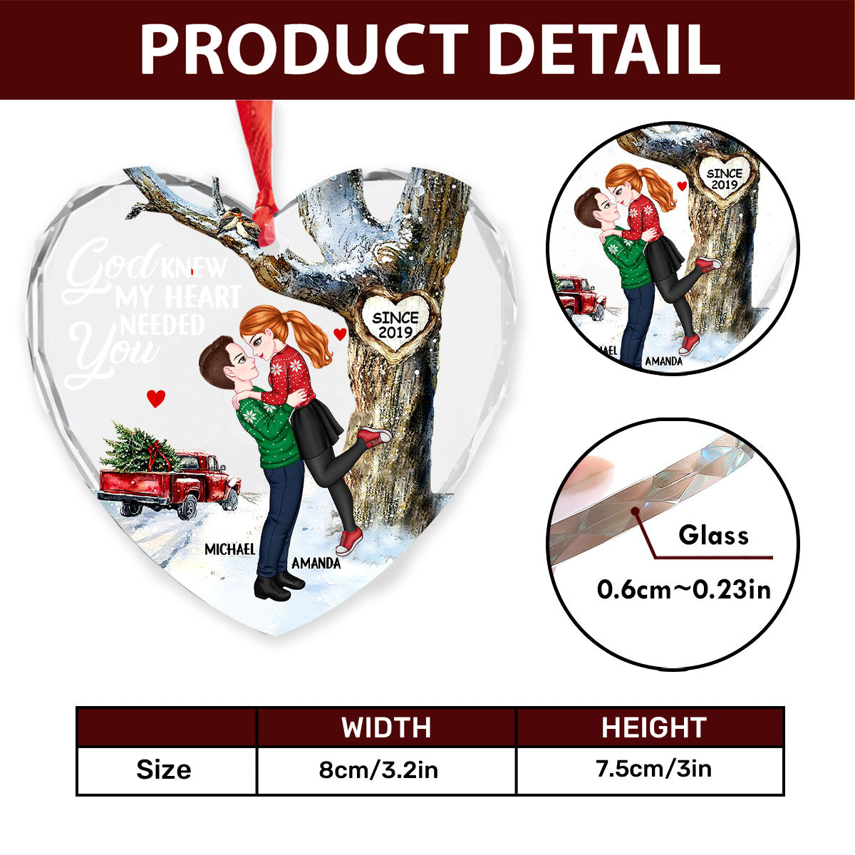 God Knew My Heart Needed You - Personalized Heart Shaped Glass Ornament DSHGOHLN2606M