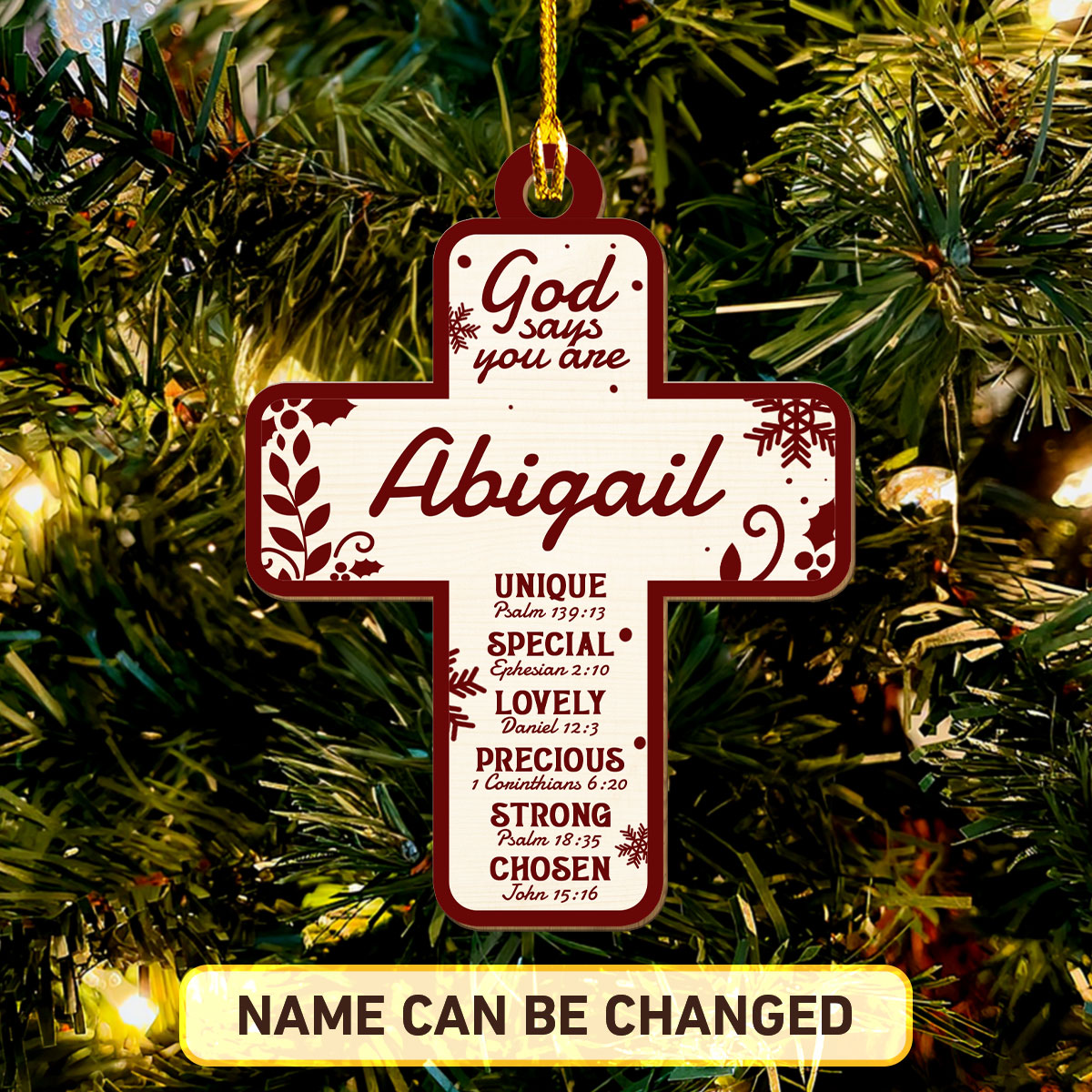 God Says I Am - Cross Personalized Wood Ornament DS-50