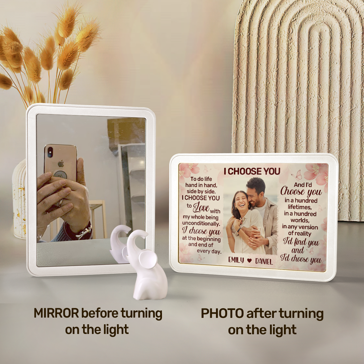 Personalized LED Mirror Photo Frame, showcase your cherished memories with a high-resolution photo, is created by our Dosaur's designers that you couldn't find elsewhere.