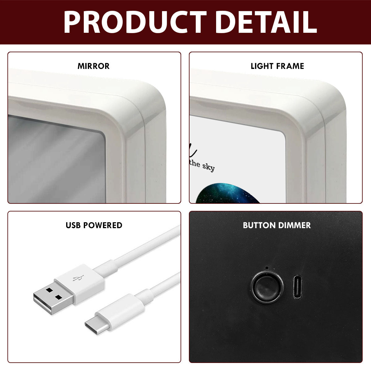 Personalized LED Mirror Photo Frame, showcase your cherished memories with a high-resolution photo, is created by our Dosaur's designers that you couldn't find elsewhere.