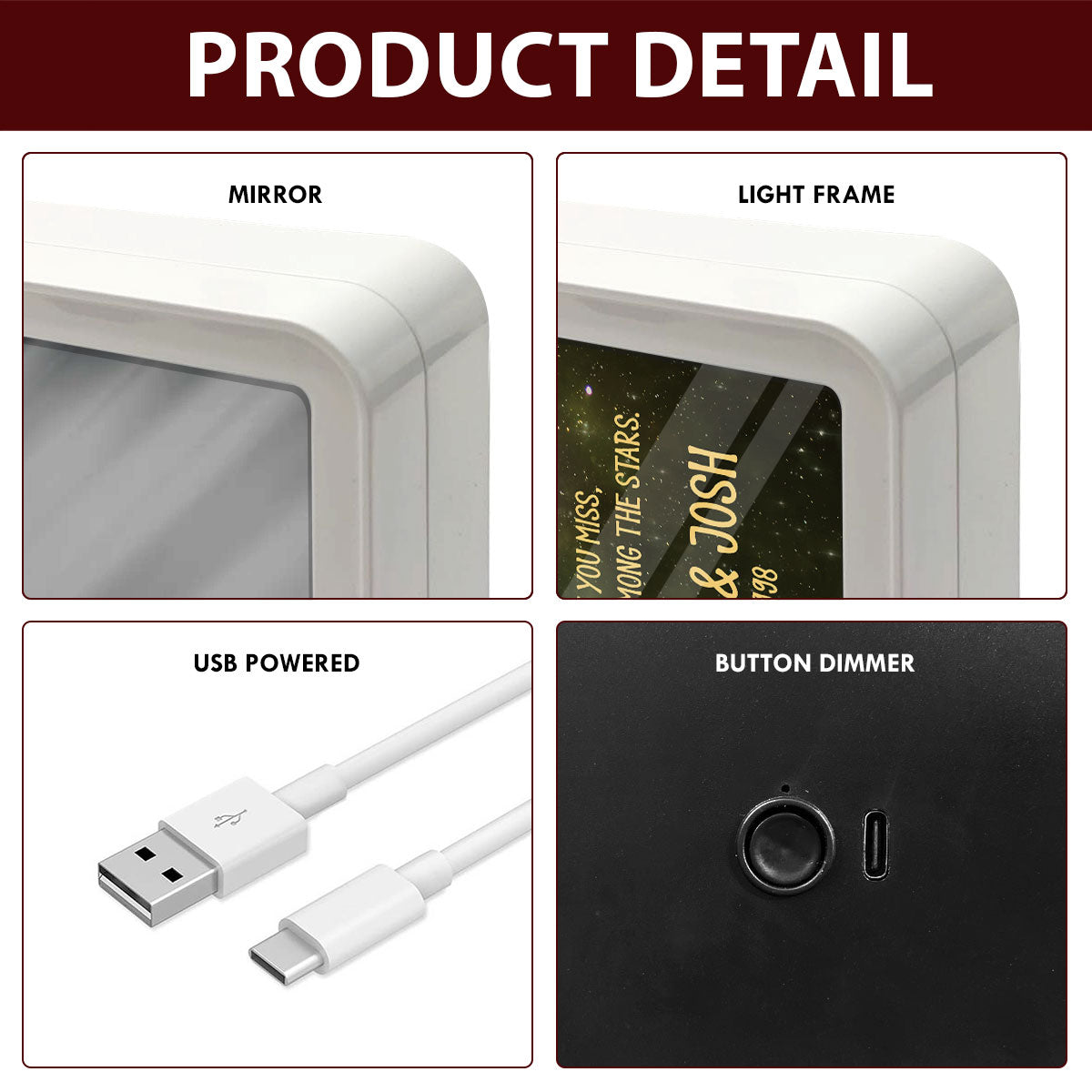 Personalized LED Mirror Photo Frame, showcase your cherished memories with a high-resolution photo, is created by our Dosaur's designers that you couldn't find elsewhere.