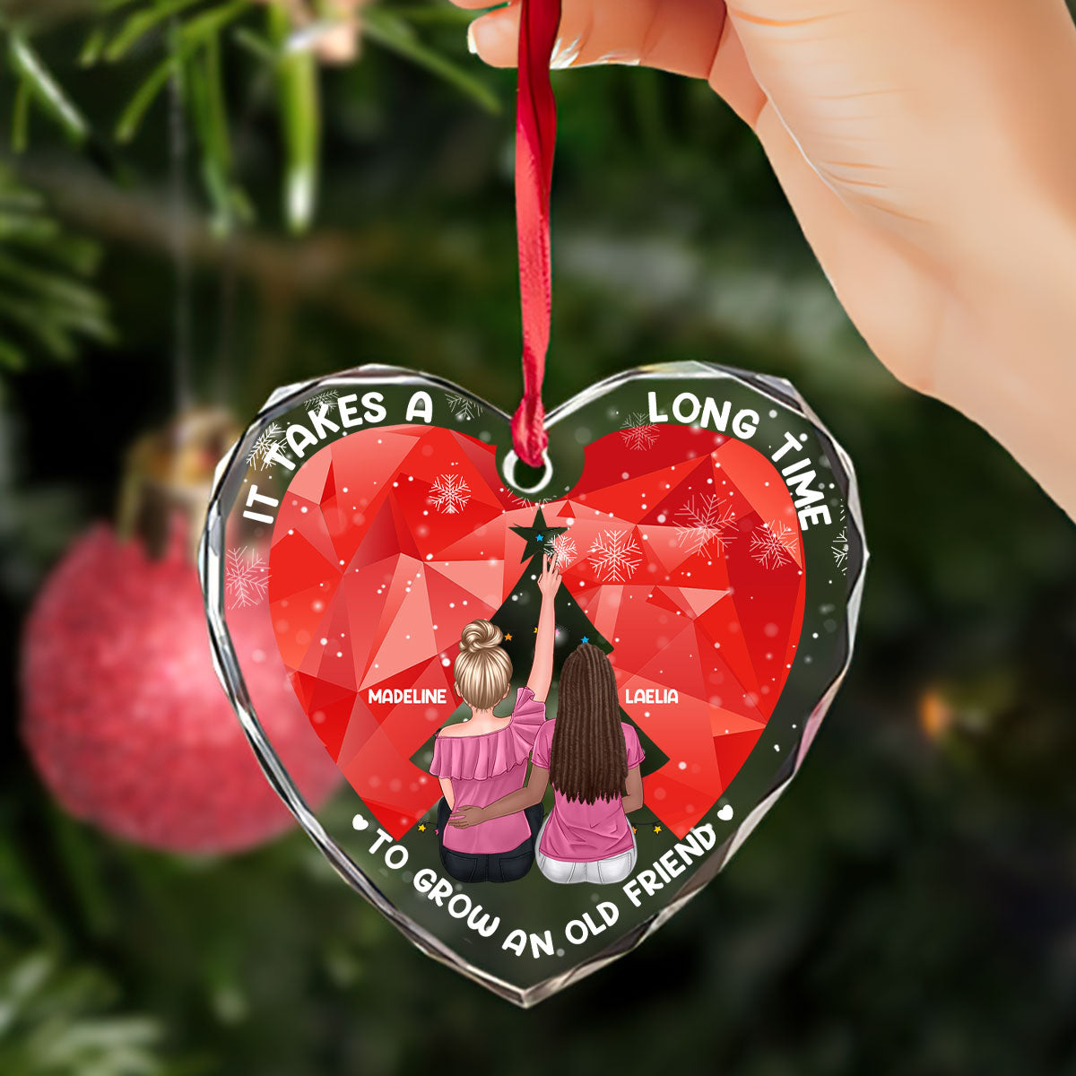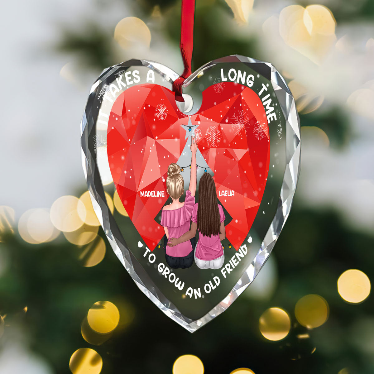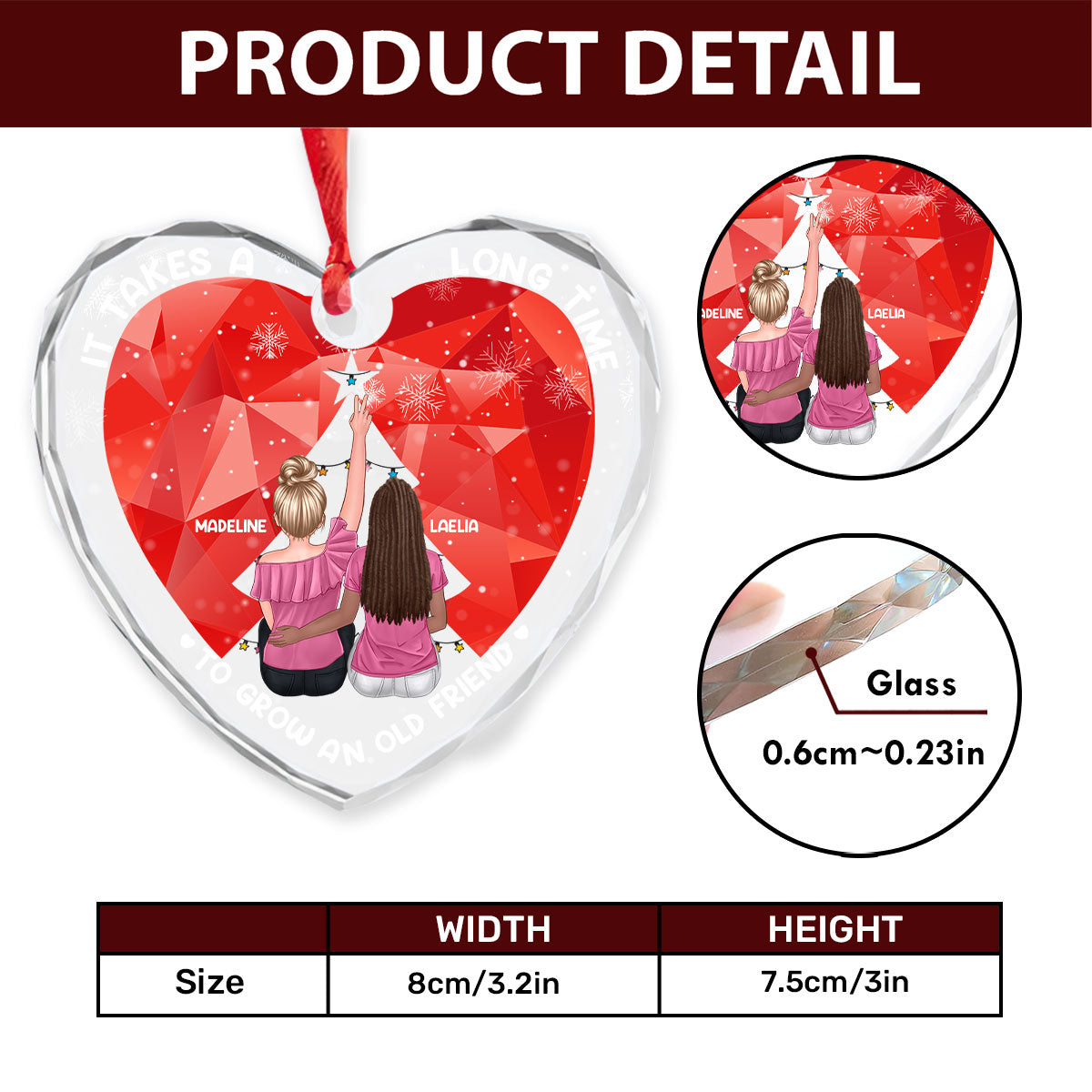 It Takes A Long Time To Grow An Old Friend - Personalized Heart Shaped Glass Ornament DSHGOHLN2144L