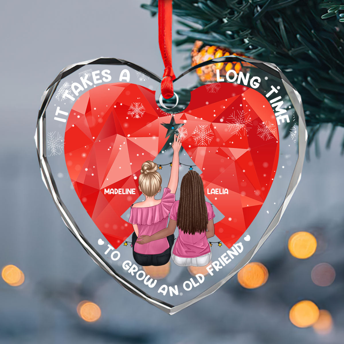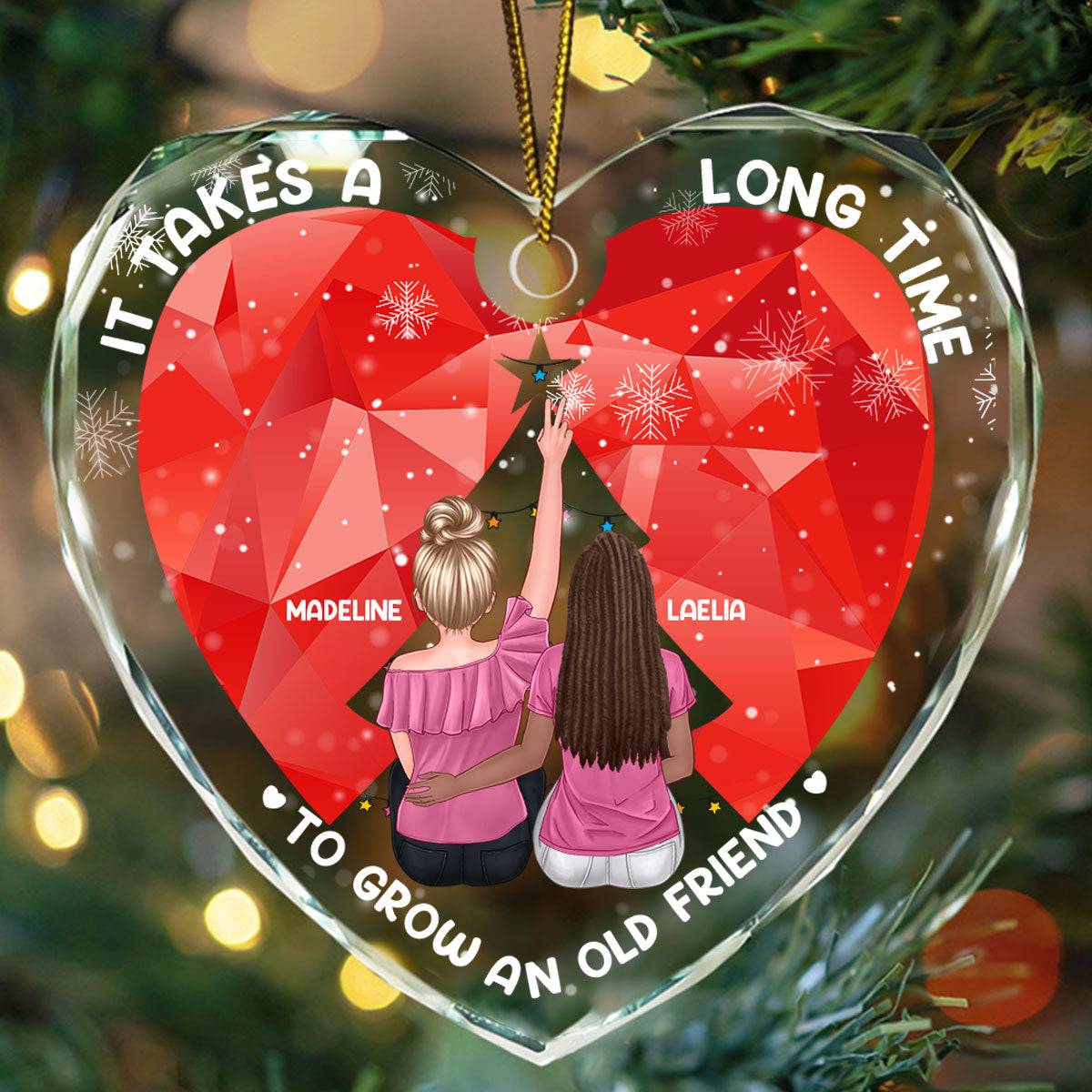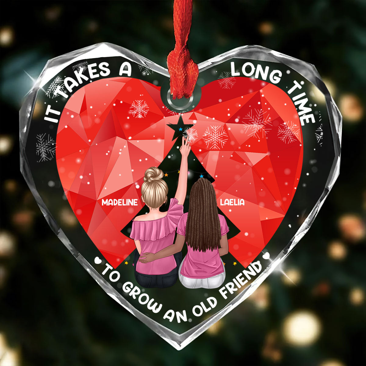 It Takes A Long Time To Grow An Old Friend - Personalized Heart Shaped Glass Ornament DSHGOHLN2144L