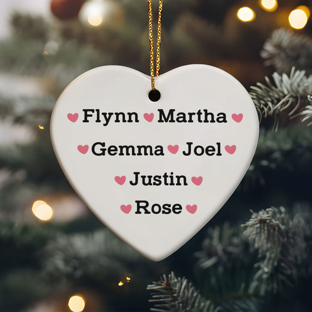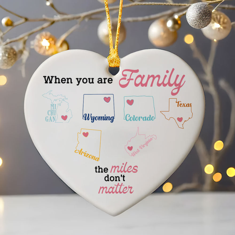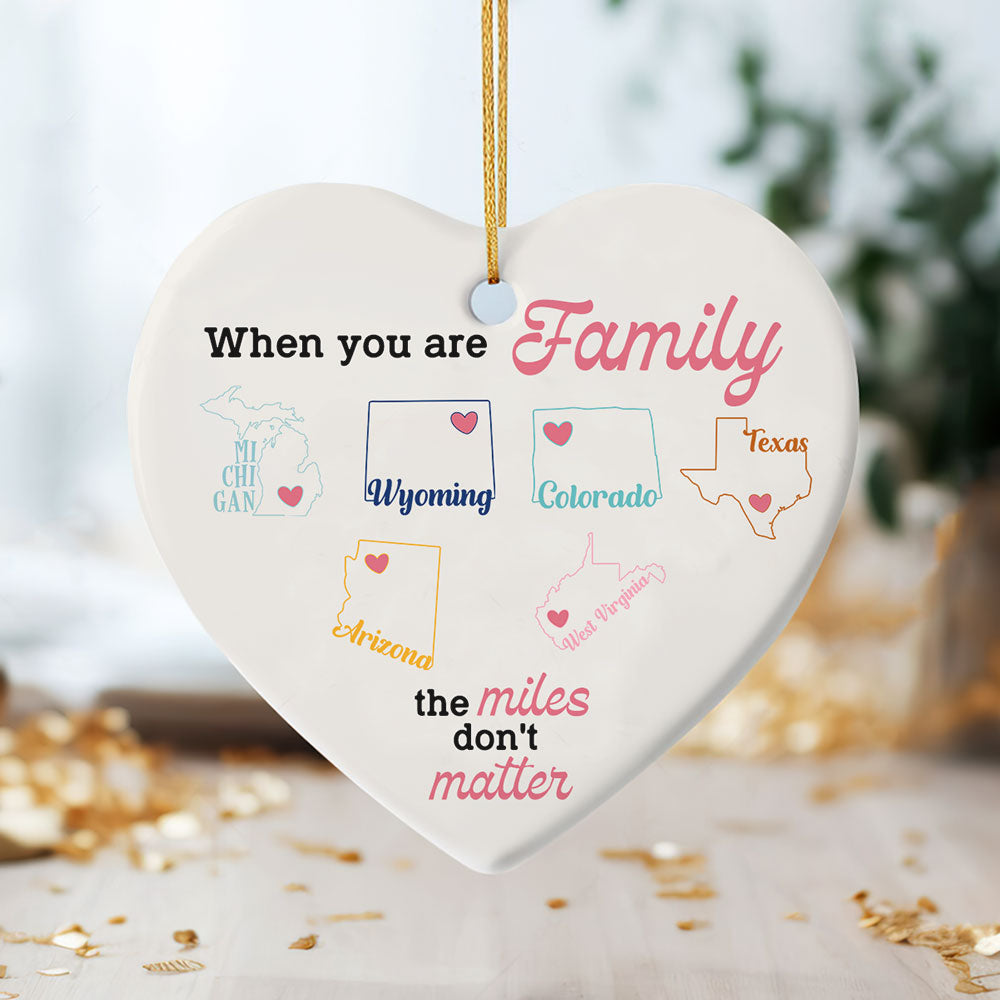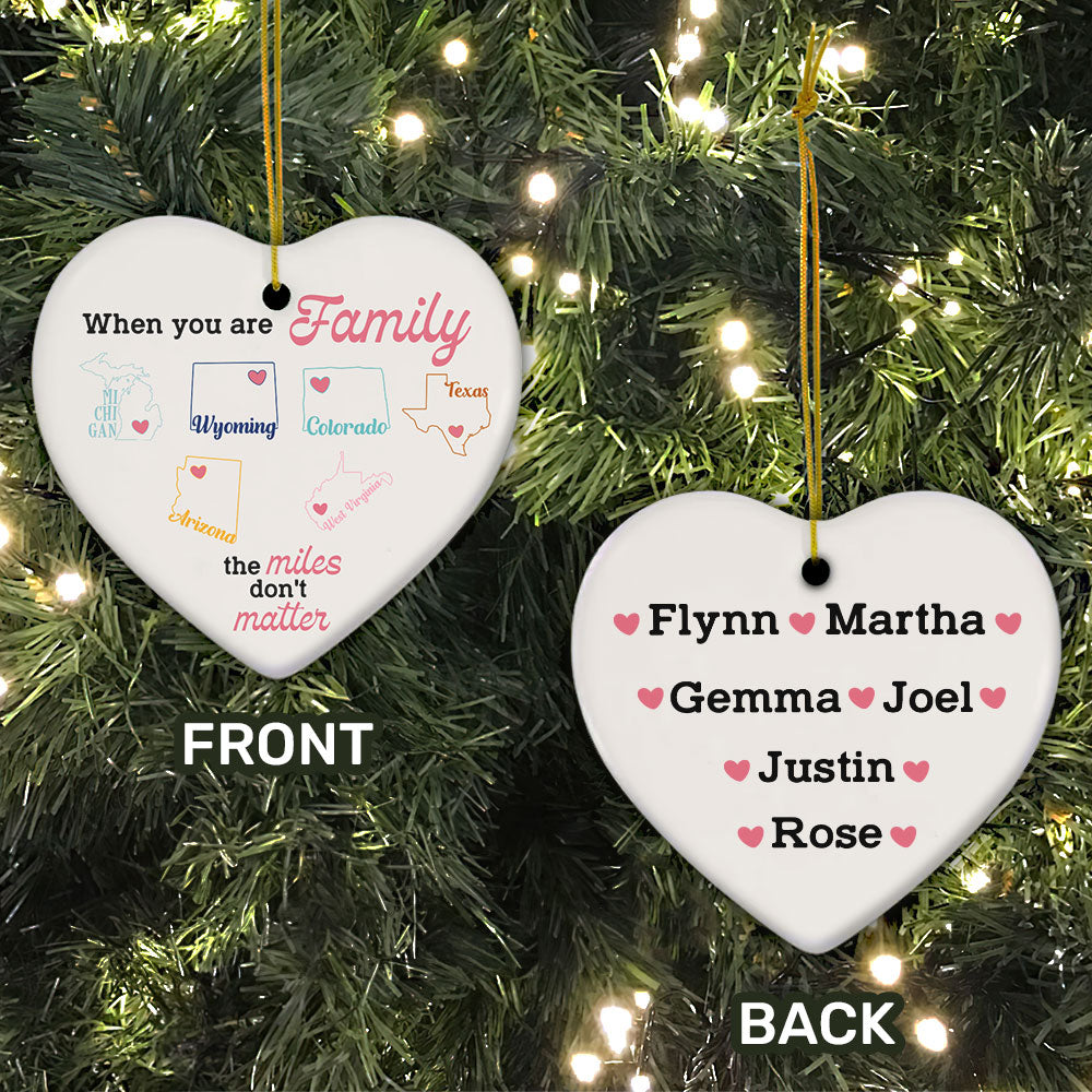 Long Distance Family Besties - Personalized Heart Shaped Ceramic Ornament DSHCOHLN2177T