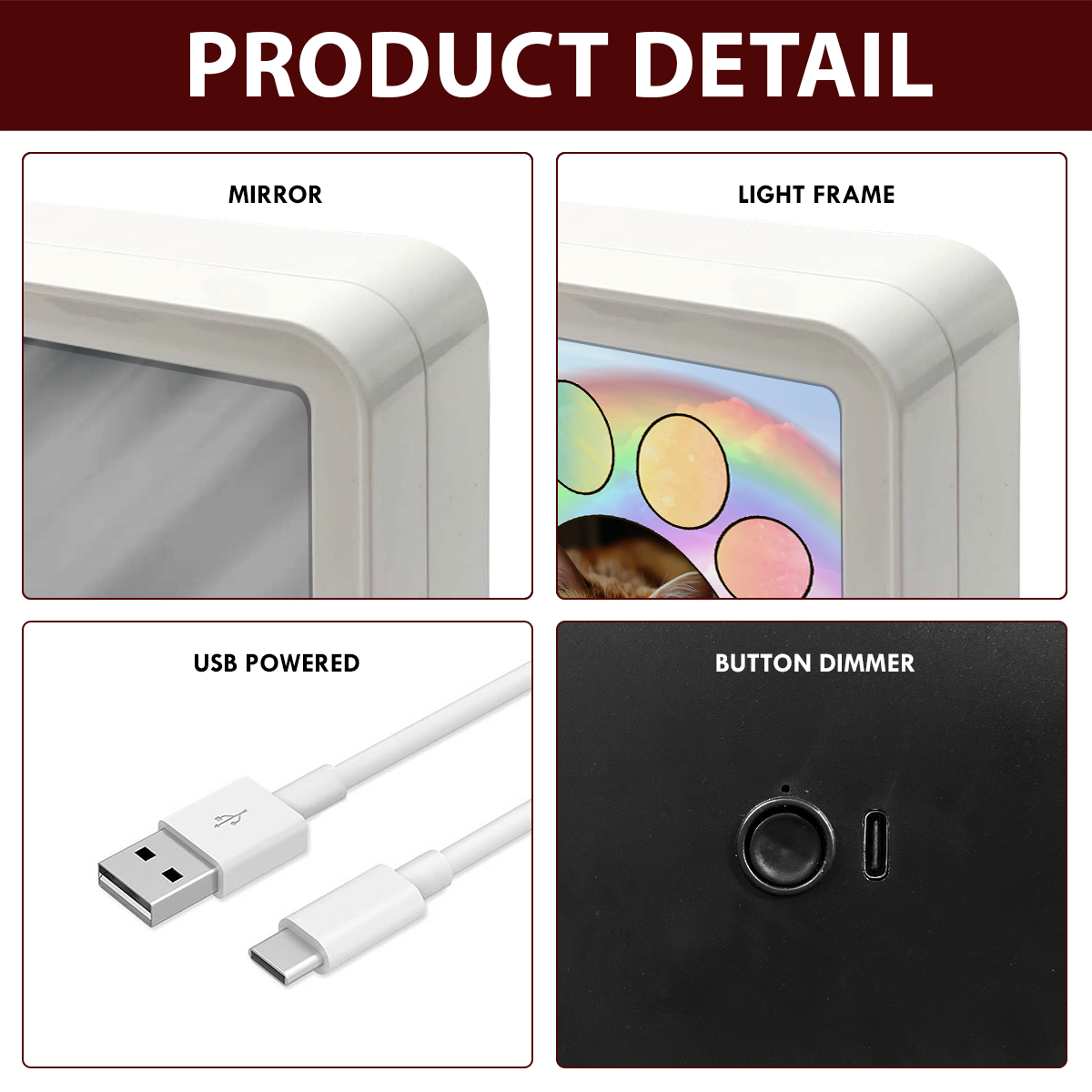 Personalized LED Mirror Photo Frame, showcase your cherished memories with a high-resolution photo, is created by our Dosaur's designers that you couldn't find elsewhere.