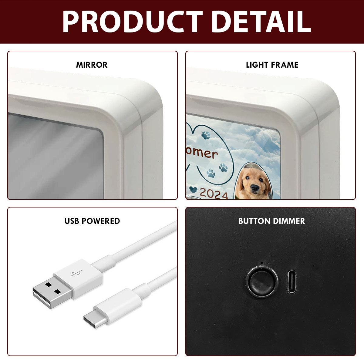 Personalized LED Mirror Photo Frame, showcase your cherished memories with a high-resolution photo, is created by our Dosaur's designers that you couldn't find elsewhere.