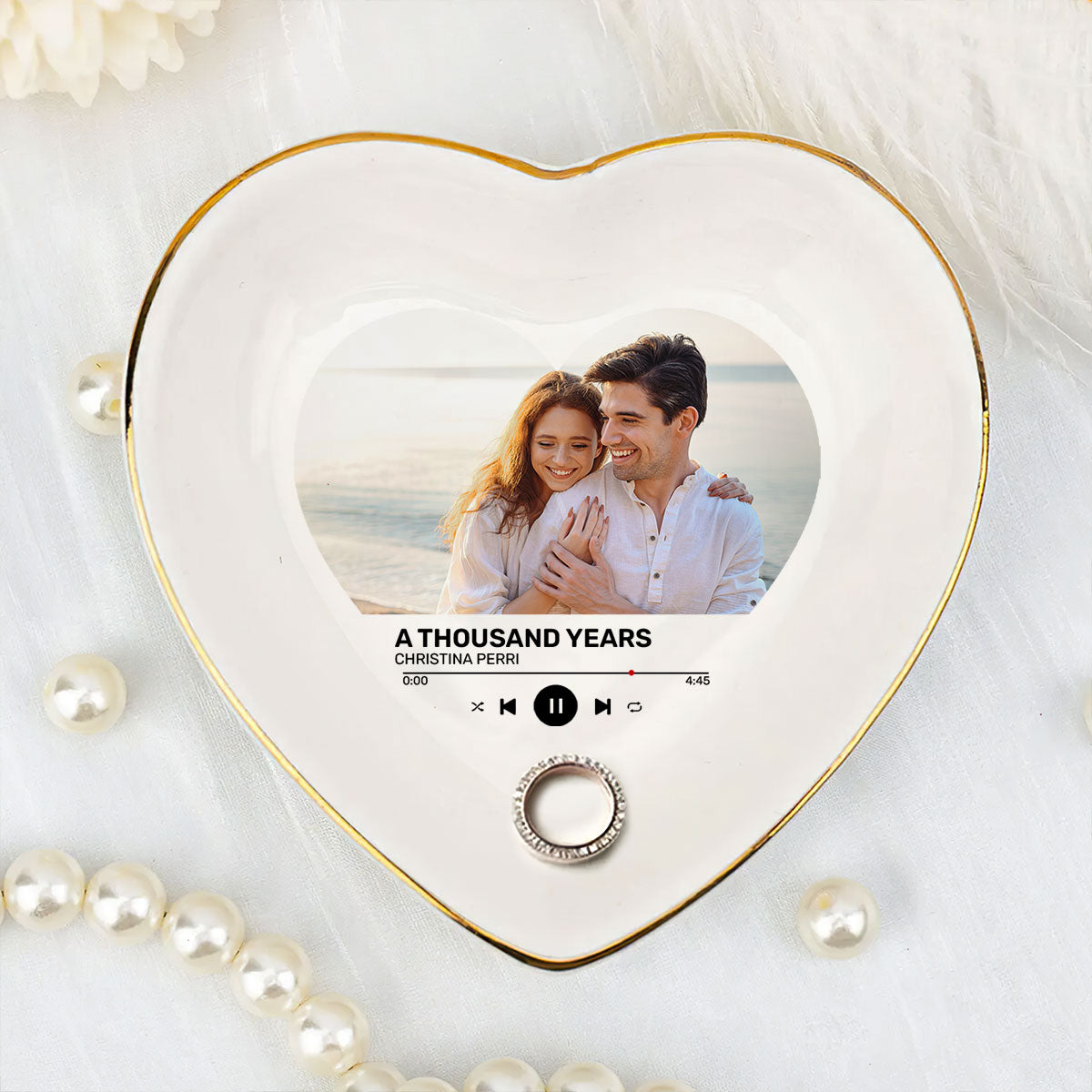 Our Favorite Love Song - Personalized Heart Shaped Jewelry Dish DSSHSCRDHLN2449M