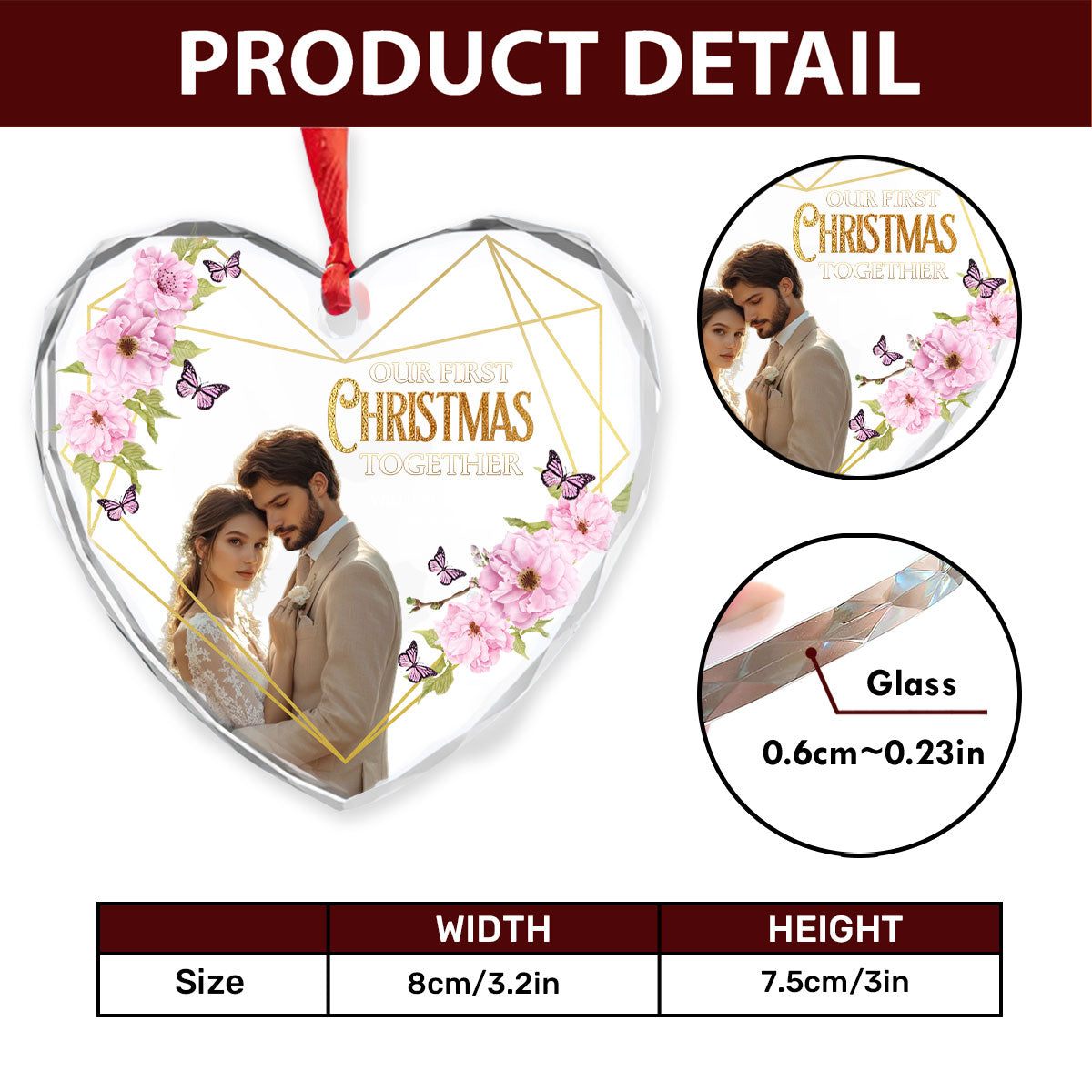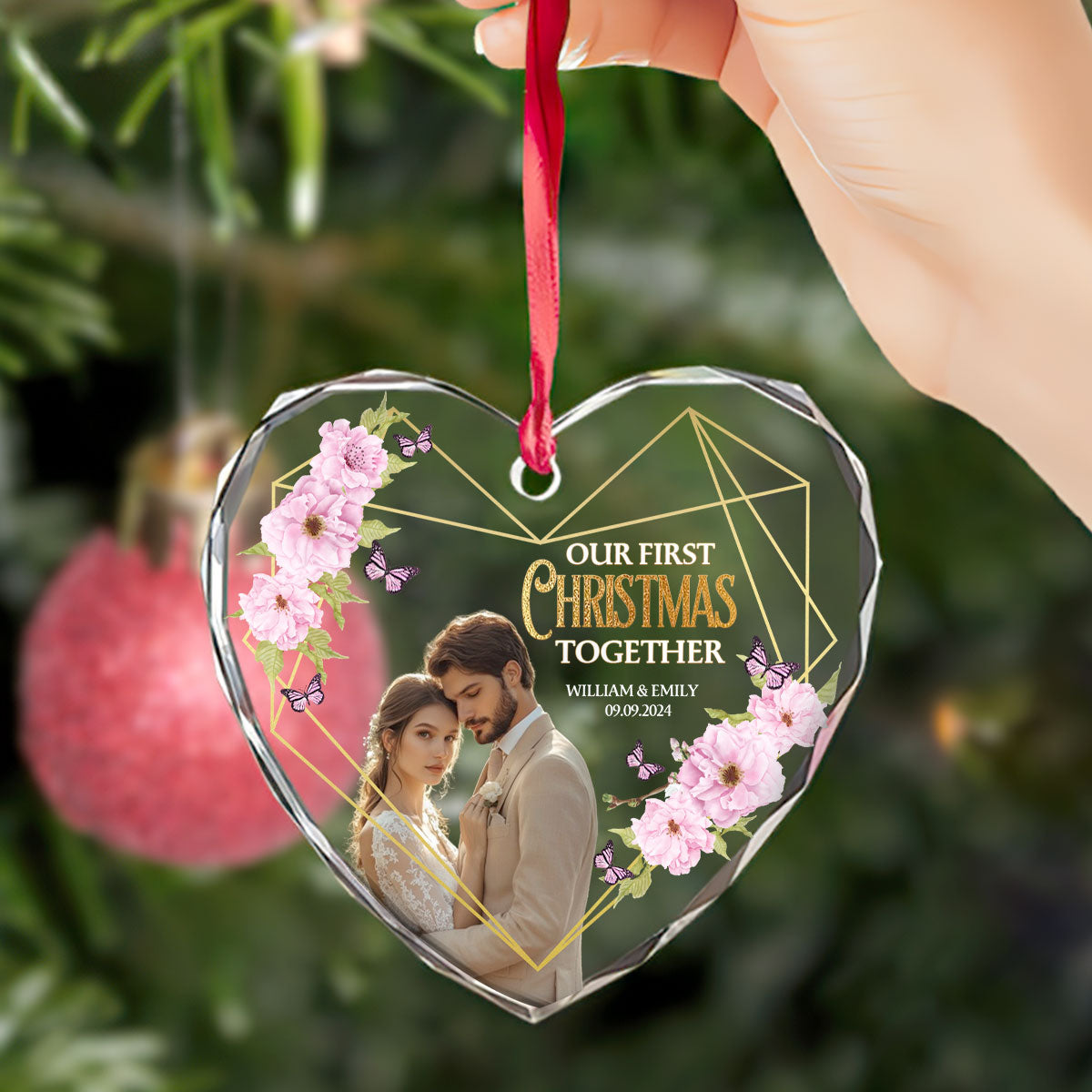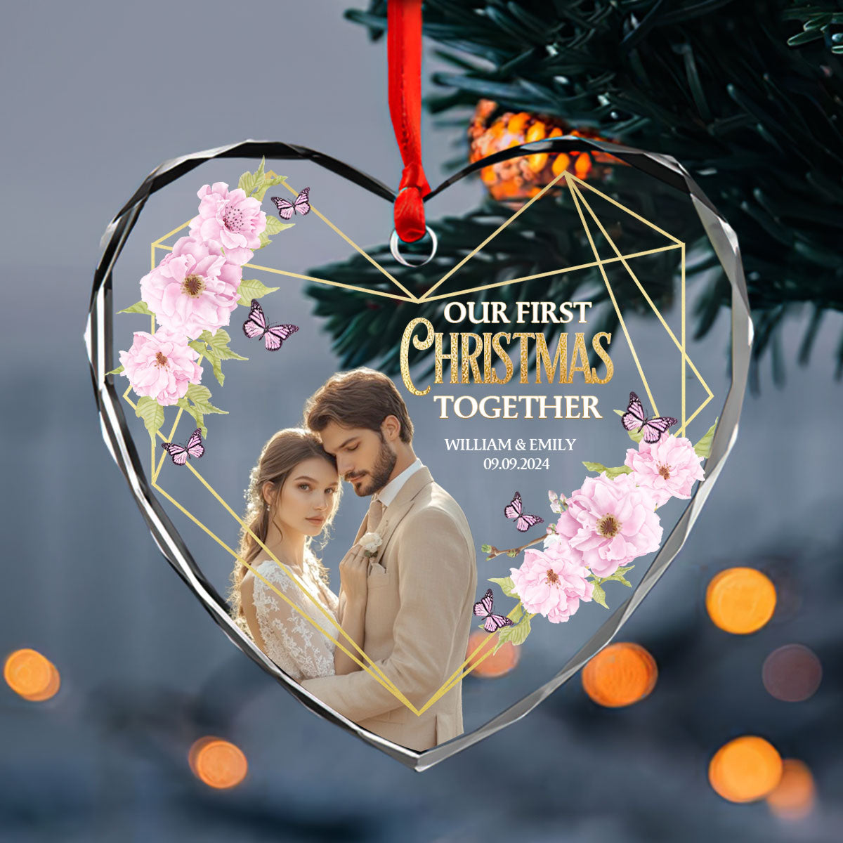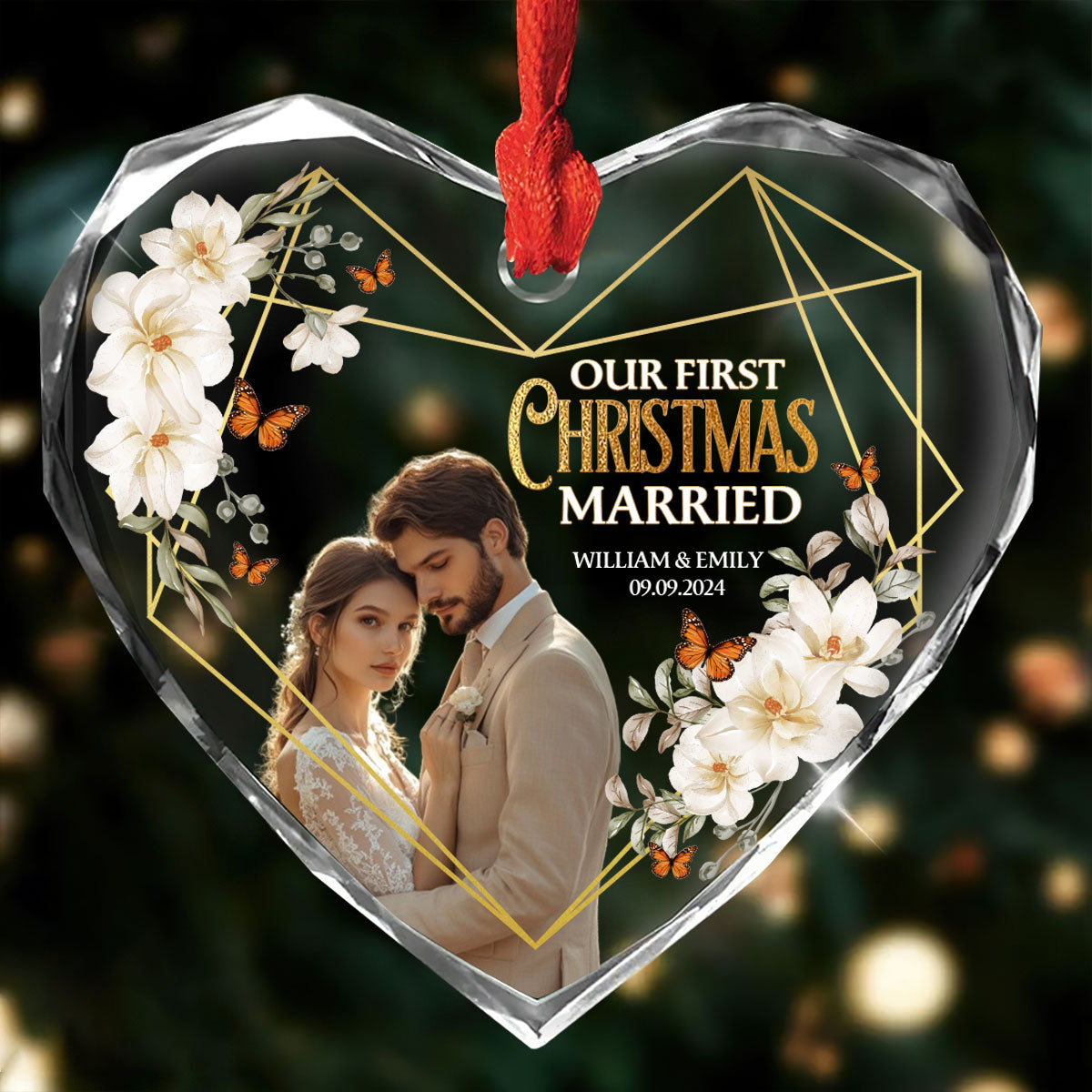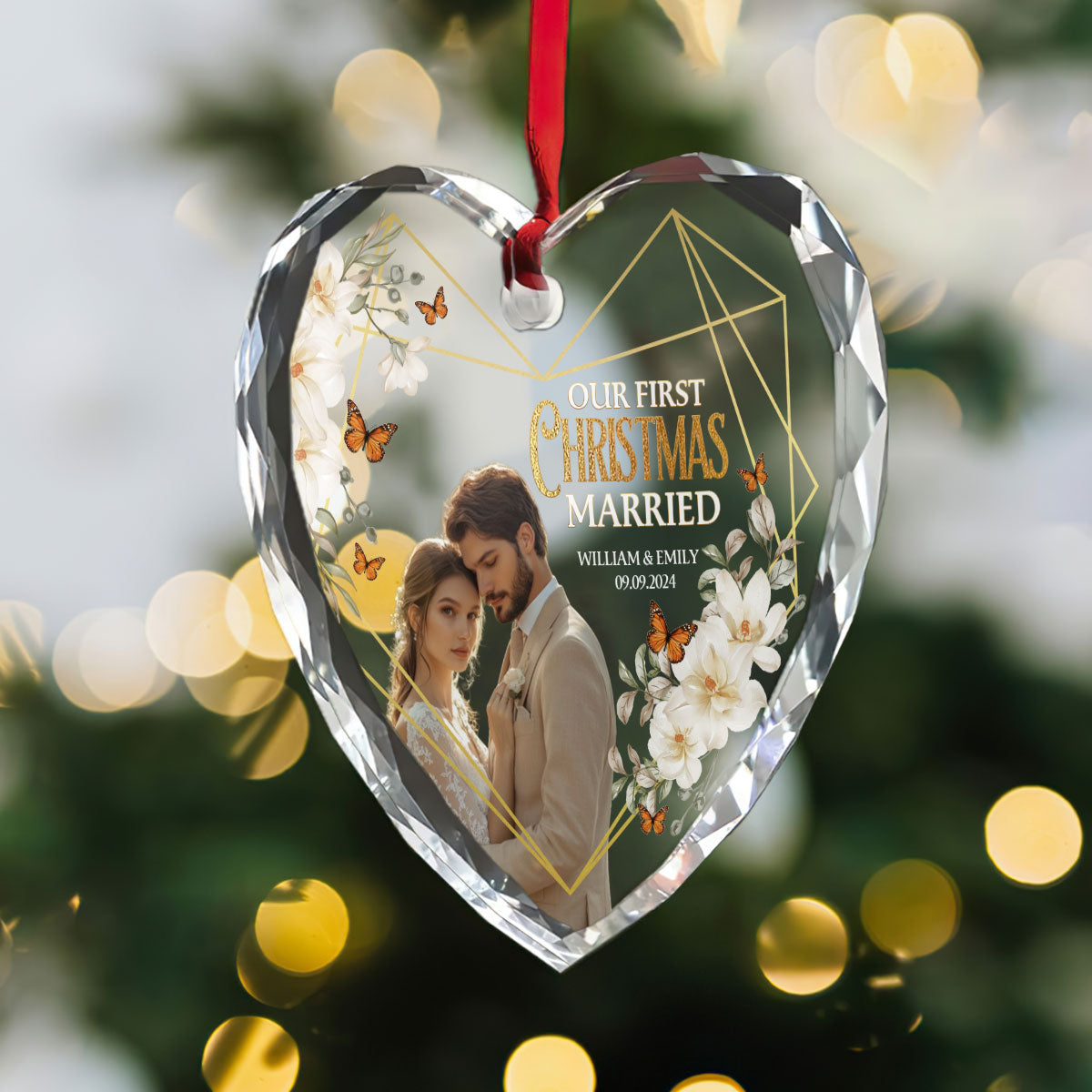 Our First Christmas Married - Personalized Heart Shaped Glass Ornament DSHGOHLPA2325M