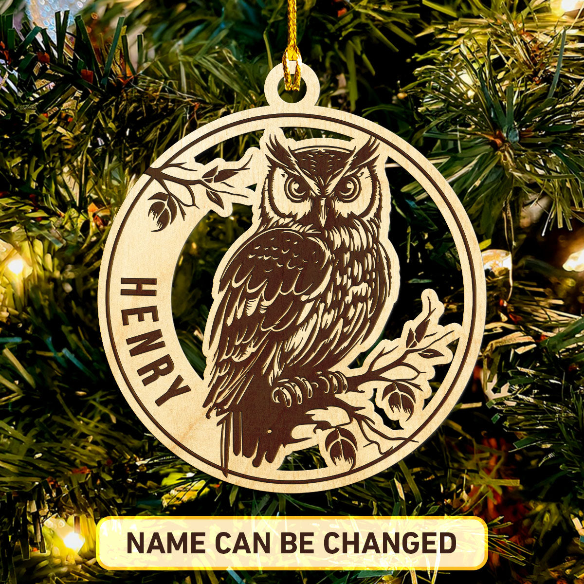 Owl Personalized Wood Ornament DS-13