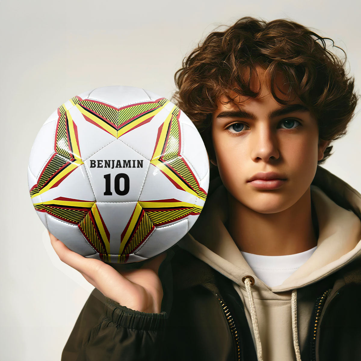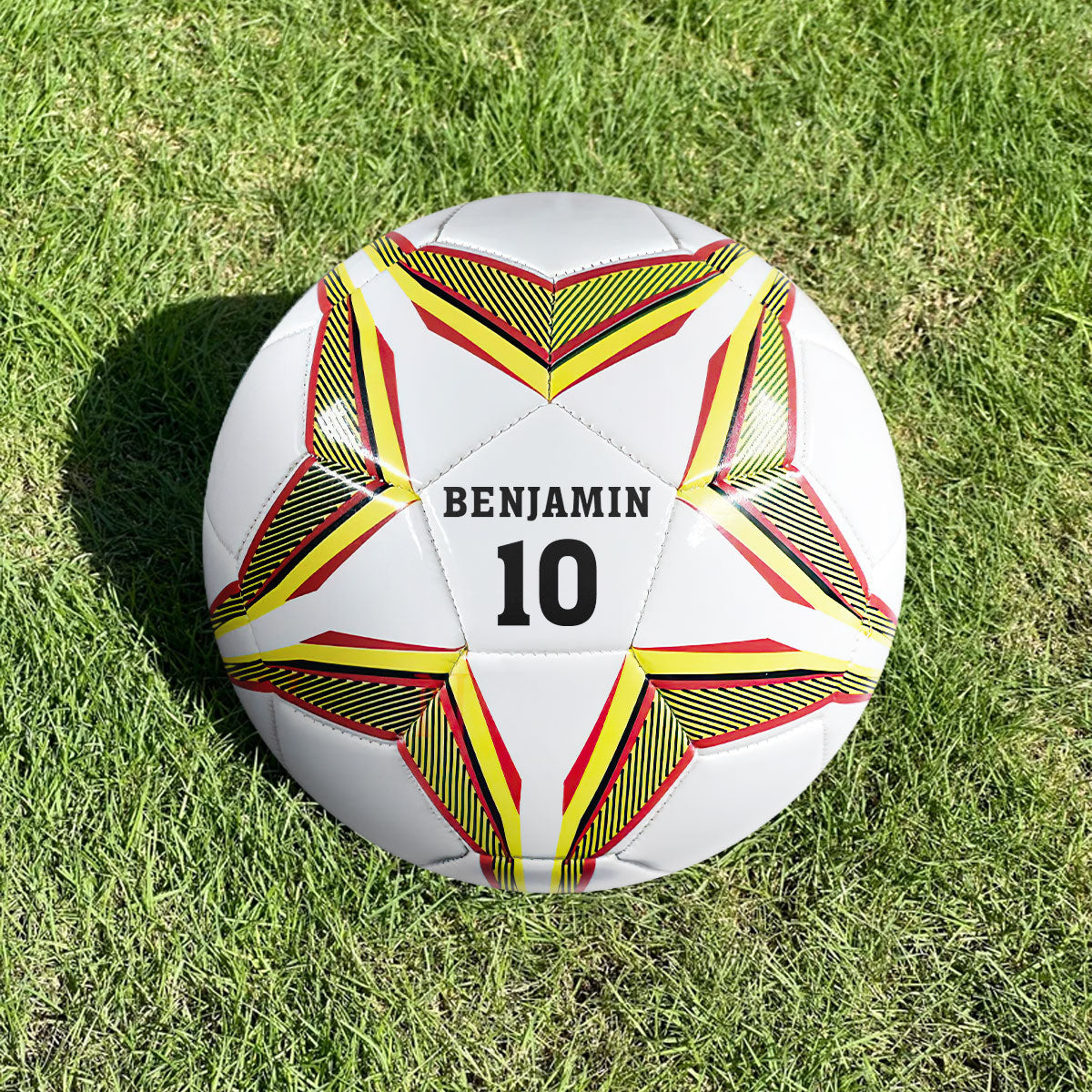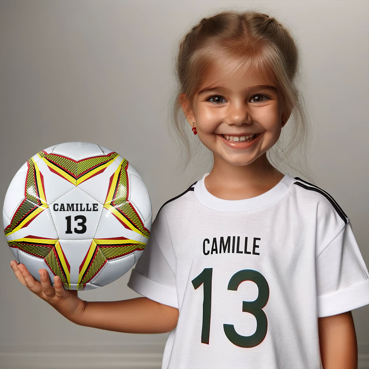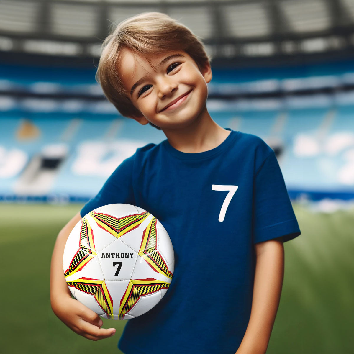 Product Description: Make your child's sports dreams come true with our personalized soccer ball, customized with their name and favorite number. This unique gift is perfect for young soccer enthusiasts and will surely bring a smile to their face.