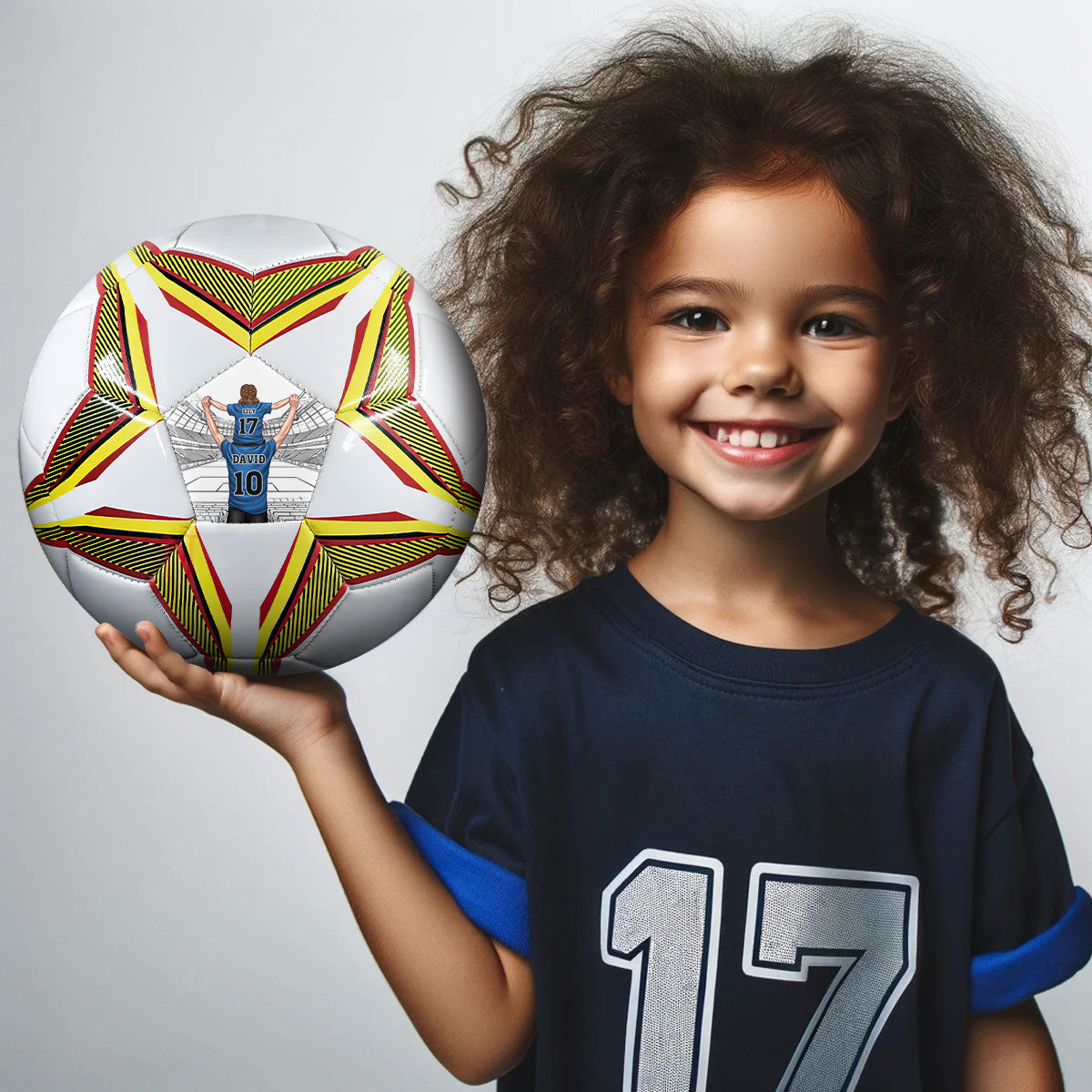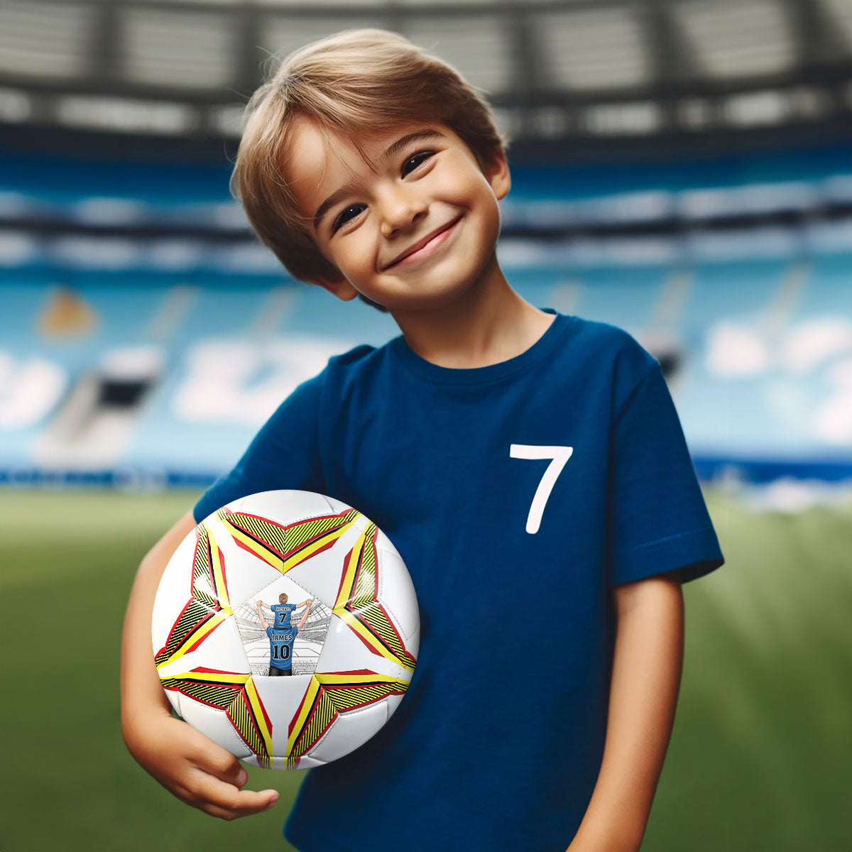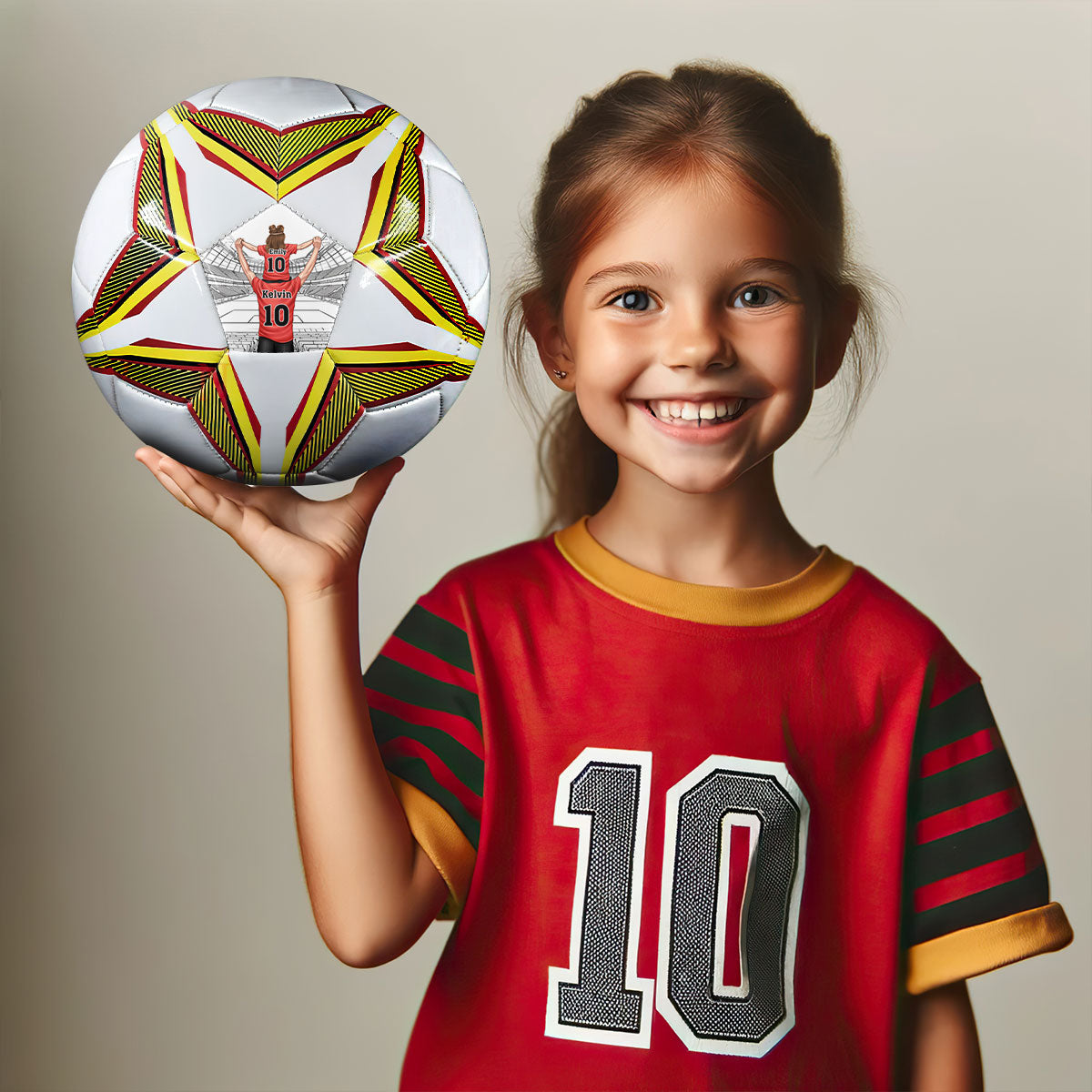 Product Description: Make your child's sports dreams come true with our personalized soccer ball, customized with their name and favorite number. This unique gift is perfect for young soccer enthusiasts and will surely bring a smile to their face.