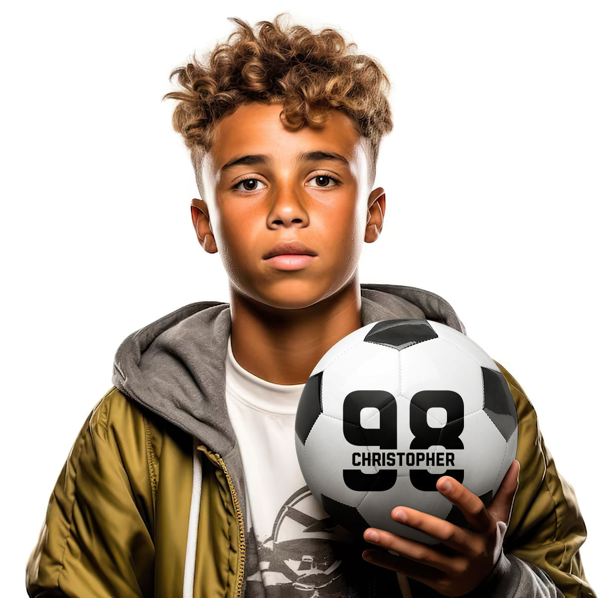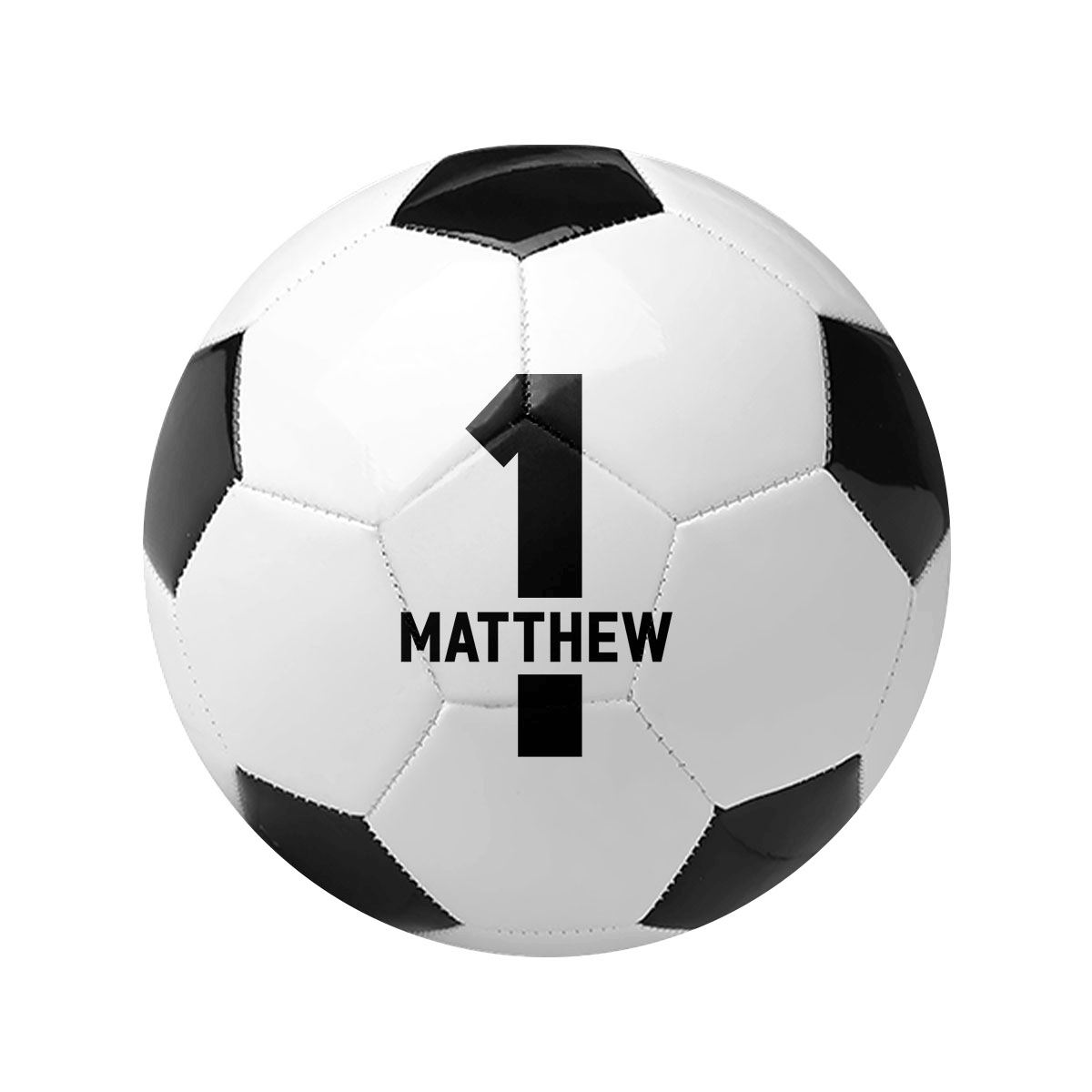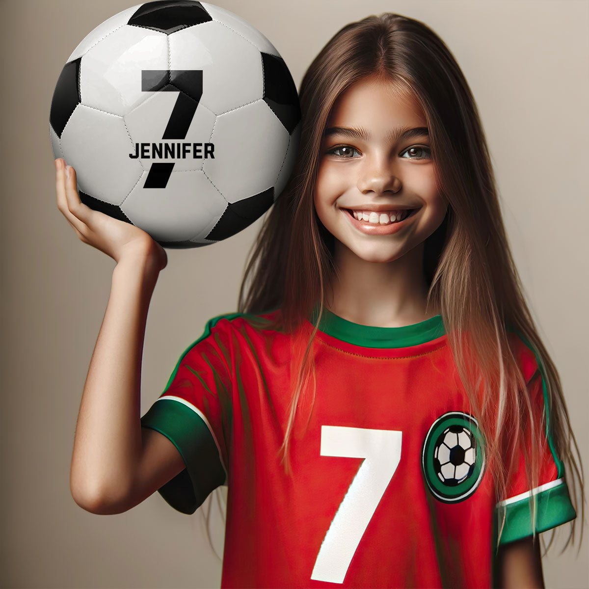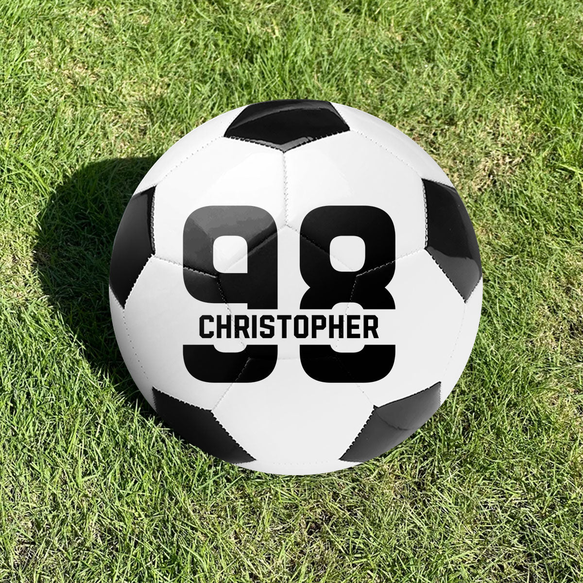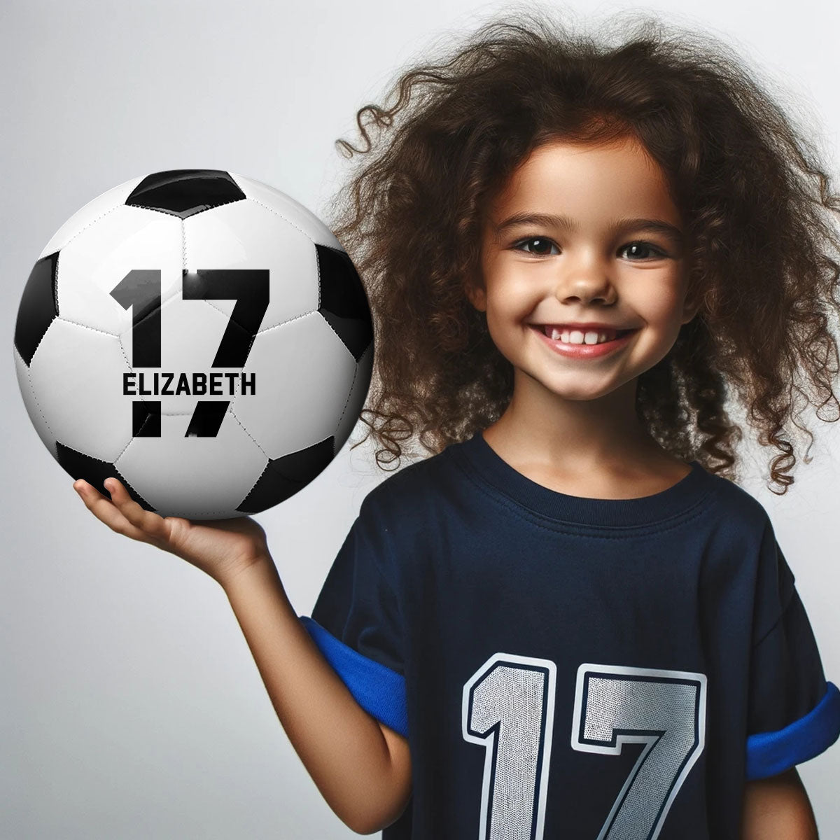 Product Description: Make your child's sports dreams come true with our personalized soccer ball, customized with their name and favorite number. This unique gift is perfect for young soccer enthusiasts and will surely bring a smile to their face.