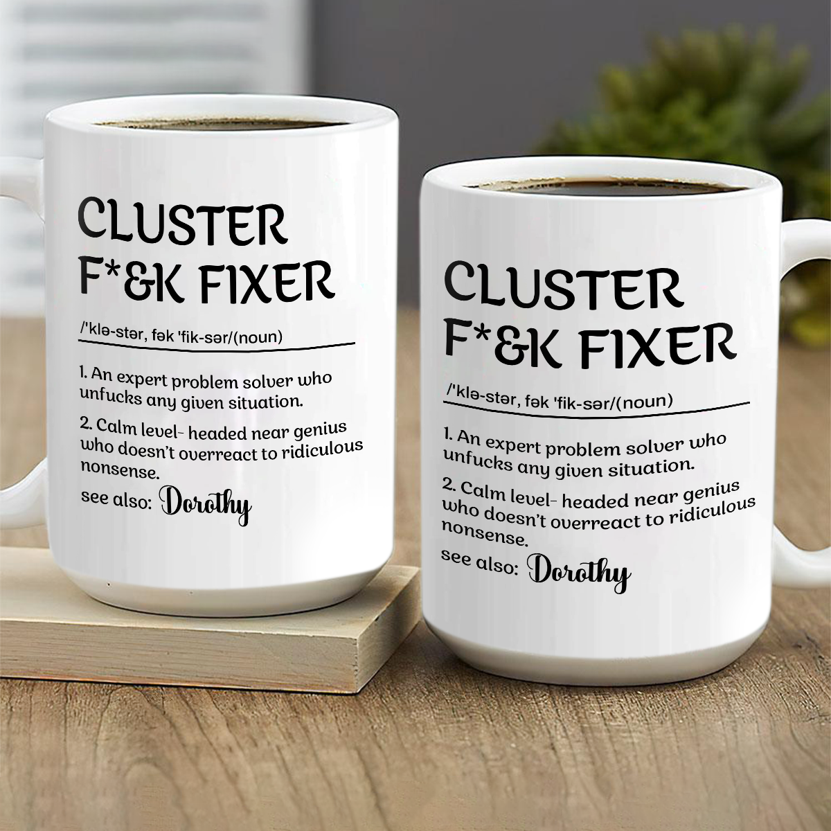 The Cool-Headed Cluster F*Ck Fixer Problem Solver - Personalized Mug Christmas Gift For Coworkers, Work Friends, Colleagues