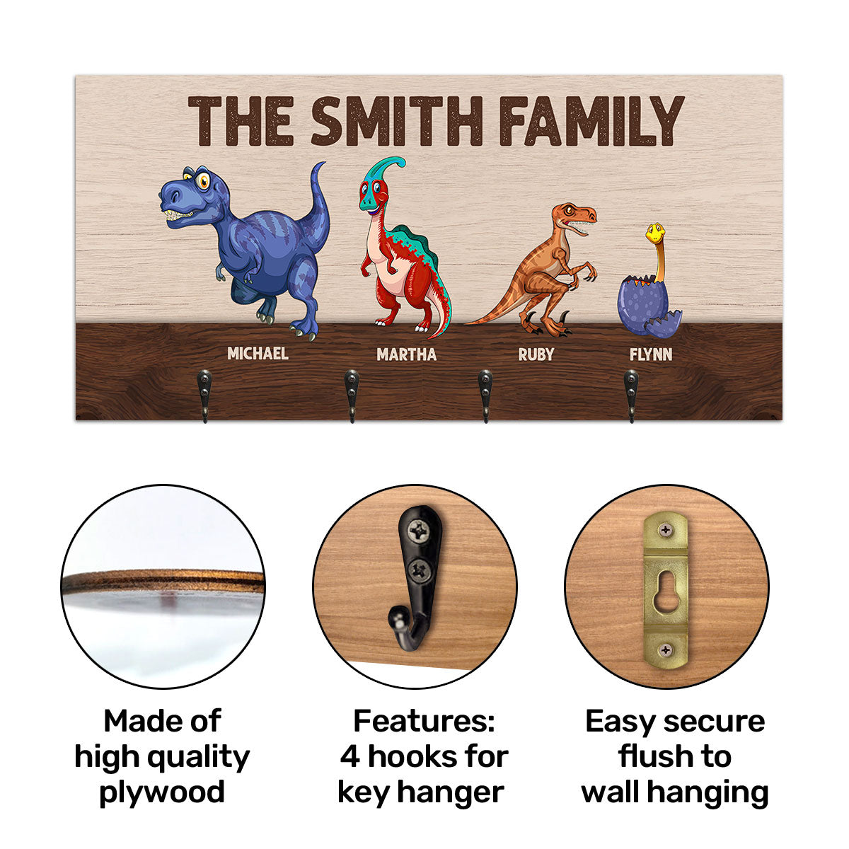 The Dinosaur Family - Personalized Key Holder DSUWKHCSDN1964TA