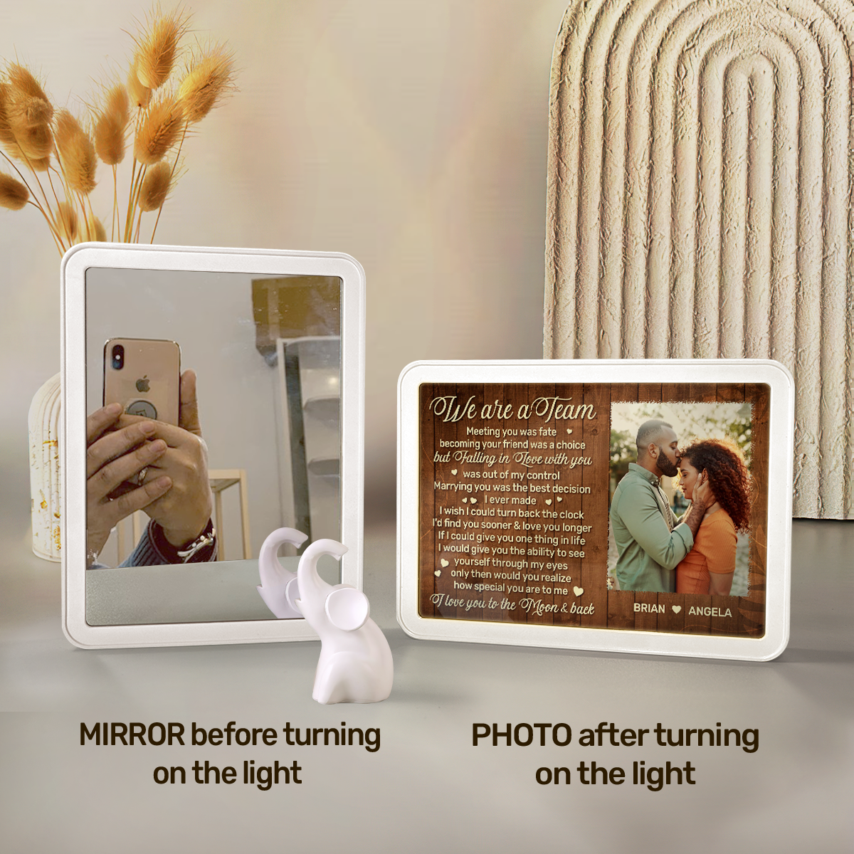 Personalized LED Mirror Photo Frame, showcase your cherished memories with a high-resolution photo, is created by our Dosaur's designers that you couldn't find elsewhere.