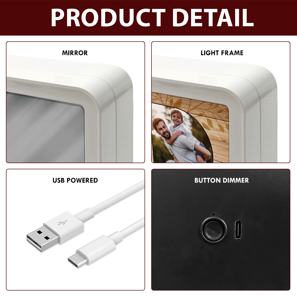 Personalized LED Mirror Photo Frame, showcase your cherished memories with a high-resolution photo, is created by our Dosaur's designers that you couldn't find elsewhere.