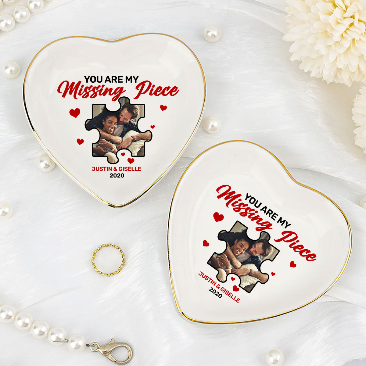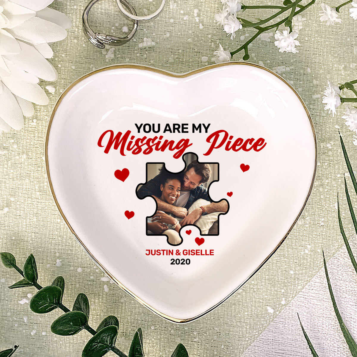 You Are My Missing Piece - Personalized Heart Shaped Jewelry Dish DSSHSCRDDN2442M