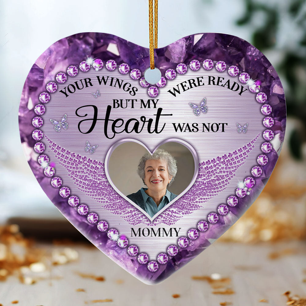 Your Wings Were Ready But My Heart Was Not - Personalized Heart Shaped Ceramic Ornament DSHCOHLN2479D
